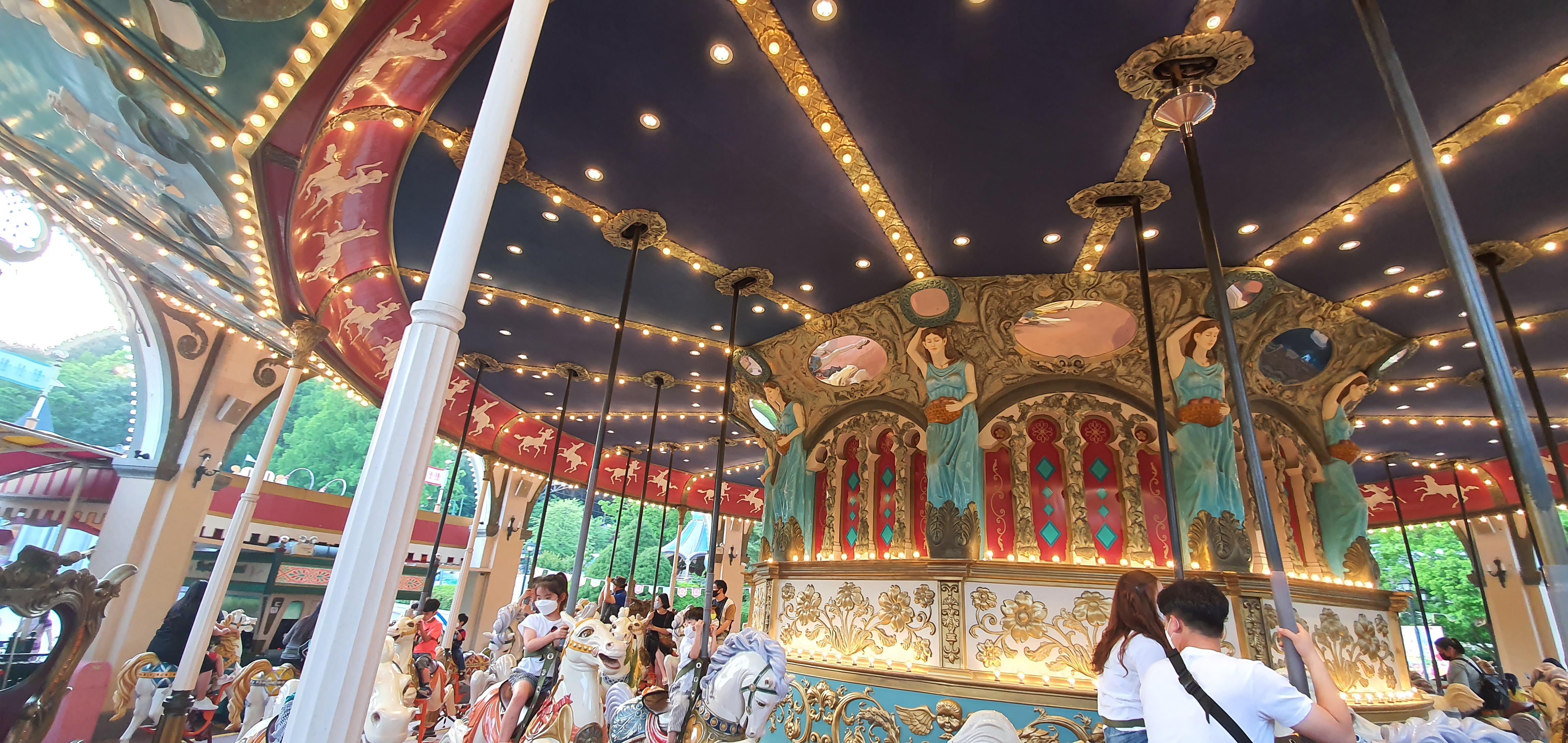 어두운 상태는 아니지만 회전목마 가까이에서 보니 화려합니다. 에버랜드 회전목마는 크기면에서 제가 보았던 회전목마중에 가장 크기가 큰 것 같습니다. 어두워 지면 회전목마 조명을 배경으로 사진을 촬영하는 분들이 많은 인기있는 장소입니다.