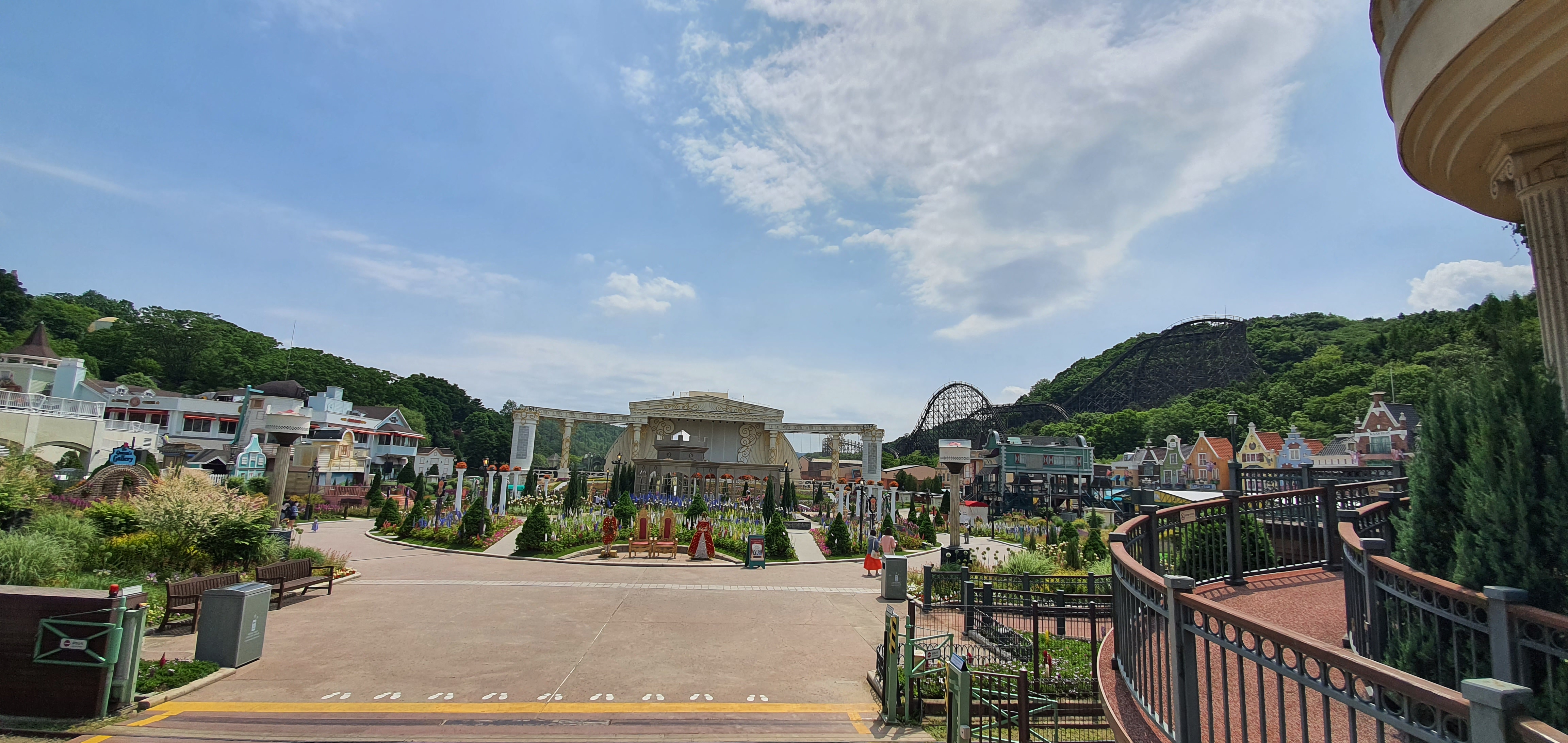 제가 에버랜드를 방문한 날은 날씨가 화창한 5월이였습니다. 개장 시간에 맞춰 오전 일찍이 방문하여 위 사진에서 보는 것과 같이 사람들이 많지 않았습니다. 일단 날씨가 화창하여 크게 날씨에 제한받지 않고 에버랜드코스추천을 이용할 수 있어서 다행이였습니다. 위 사진은 에버랜드 홈브리지에서 연결길로 에버랜드에 들어서면 마주치는 '포시즌스 가든'입니다.