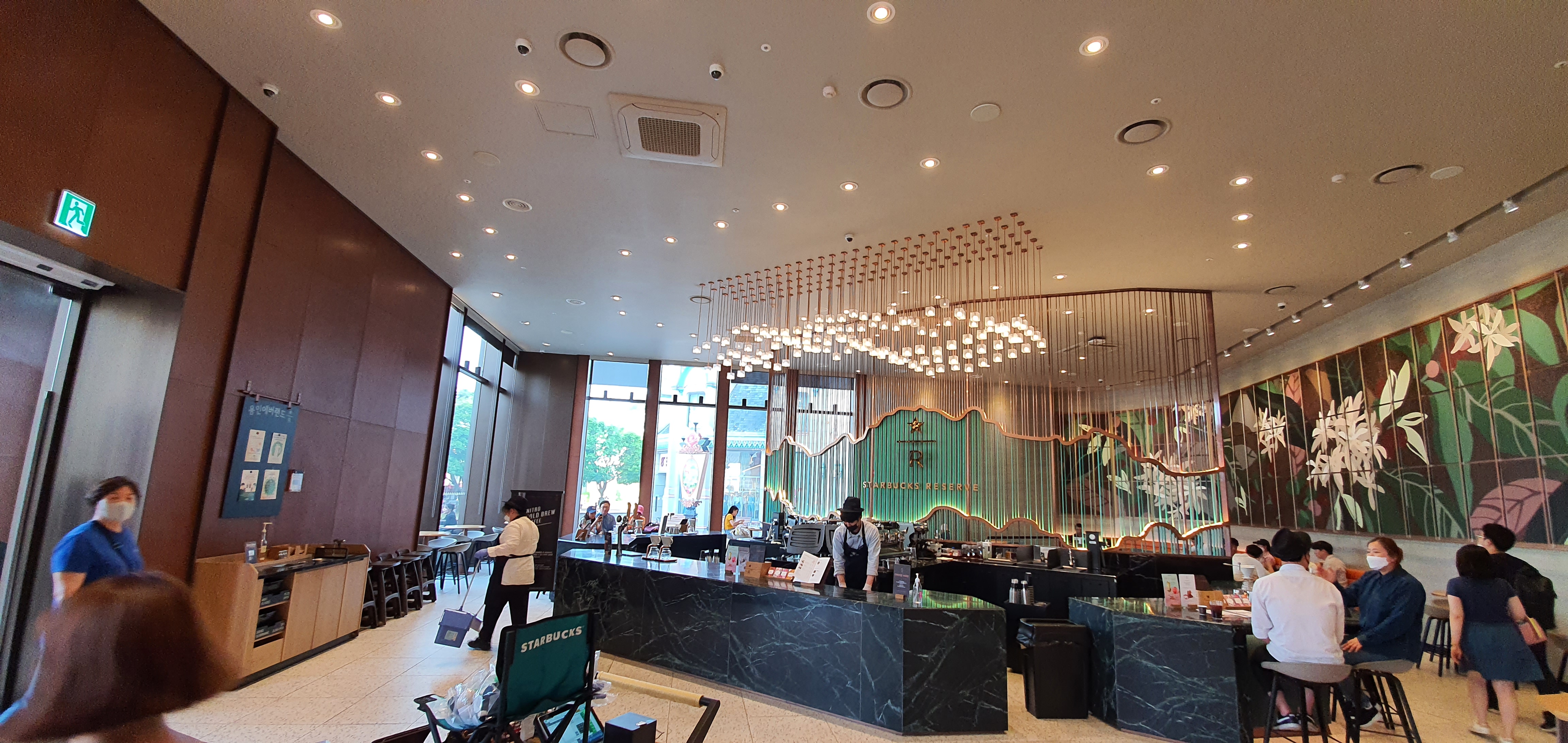 규모가 커서 그런지 실내 매장 인테리어가 정말 화려하고 멋집니다. 테이블 공간도 많은 사람들이 한번에 이용할 수 있도록 잘 구비가 되어 있어서 쾌적한 분위기에서 스타벅스만의 여유로움을 즐길 수 있었습니다.