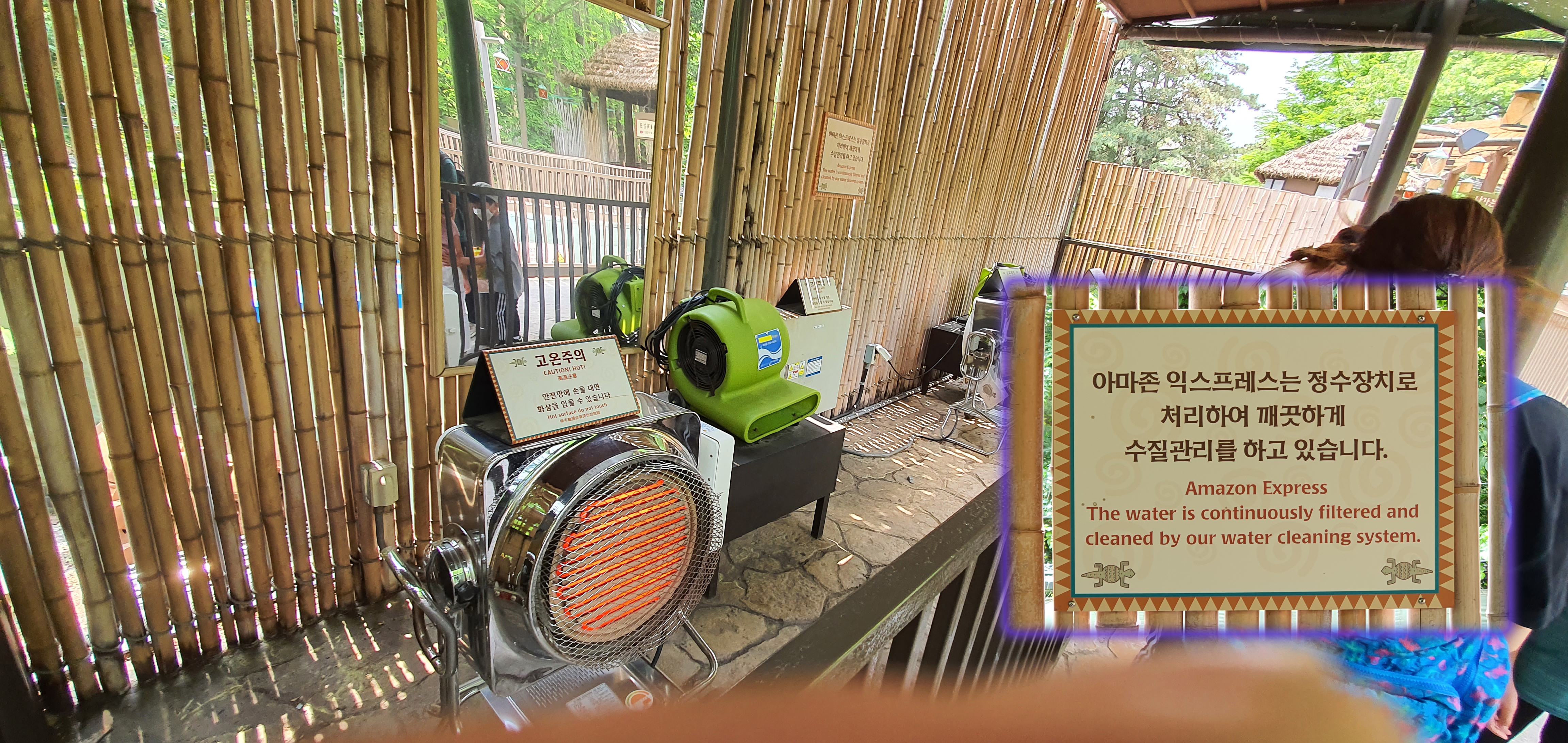 에버랜드코스추천 아마존 익스프레스를 이용후 나가는 곳 입구에는 위 사진에서 보시는 것과 같이 물에 젖은 곳을 재빠르게 말릴 수 있게 건조할 수 있는 장소가 마련되어 있습니다. 그리고 아마존 익스프레스는 이용하는 물은 정수장치로 처리하여 깨끗하게 수질관리를 하고 있어 젖었을 때 오염의 걱정은 안하셔도 되겠습니다.