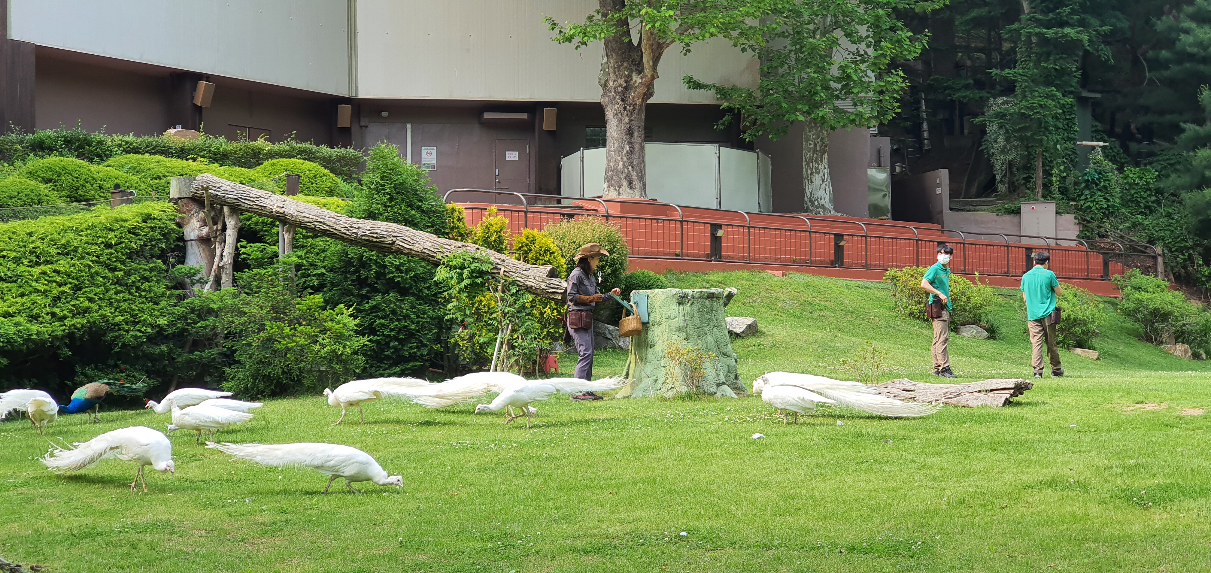 작은 새들만 있는 것이 아니라 큰 앵무새도 있습니다. 작은 새들처럼 이리저리 날라 다니지는 않지만 관람 객들에 따라 이리저리 반응합니다. 특히 좌측 하단 편집 사진의 앵무새는 사육사 물음에 우리말로 답하는데 정말 신기합니다. 예전에 말하는 새를 TV에서 시청한 적이 있지만 직접 만나니 더욱 신기했습니다.