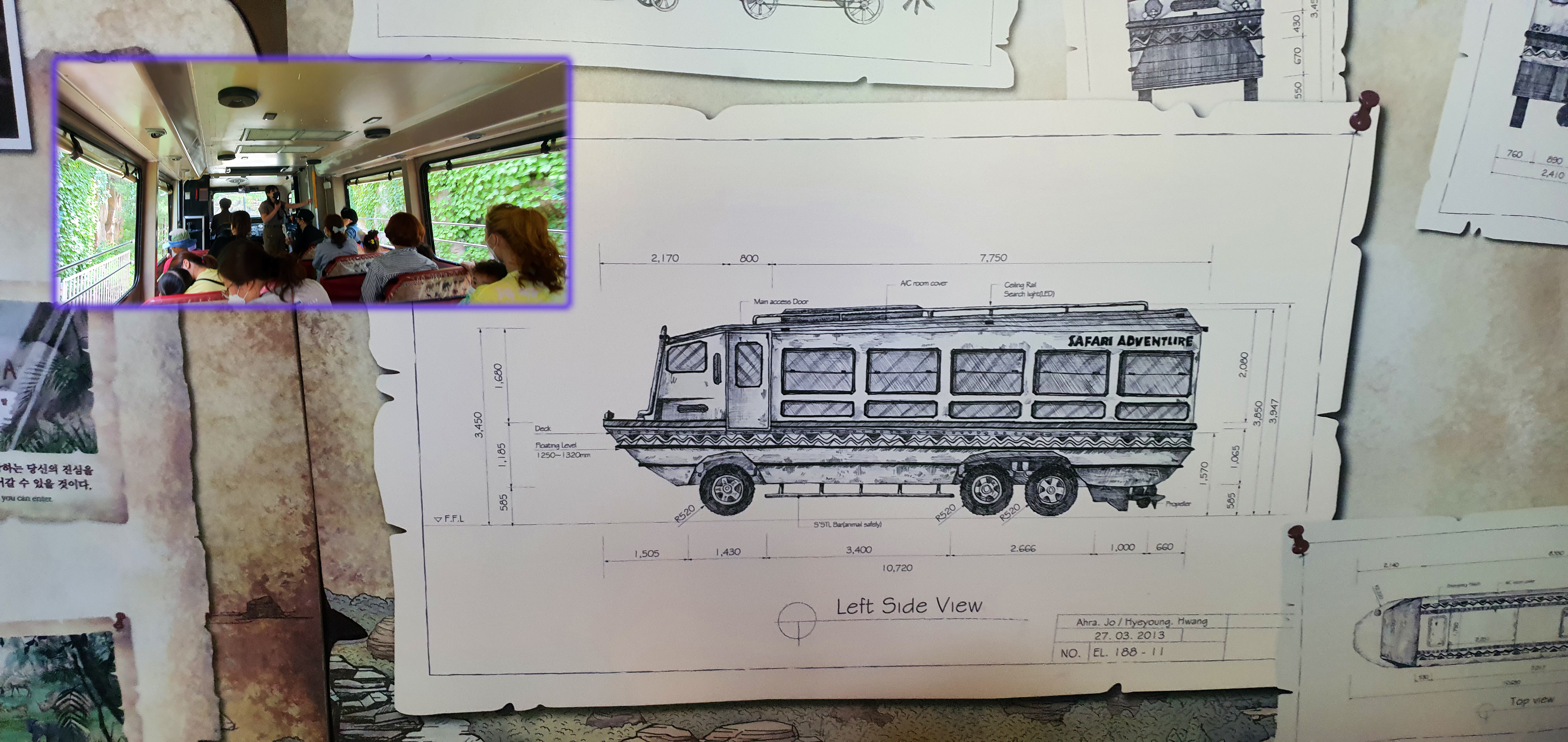 로스트밸리는 관람시에는 위 보시는 사진과 같이 전용 차량에 탑승하여 로스트밸리 동물들을 관람합니다. 차량 그림을 자세히 보시면 바퀴로 움직이는 차량이지만 뒷쪽 하단부에 스크류가 있습니다. 이 차량은 수륙양용으로 예전에 제가 방문시 이용하였을 때는 물위를 지나가는 코스가 있었는데 이번에 방문시에는 아쉽게도 그러한 코스는 없었습니다. 제가 생각했을 때는 물을 채워놓는 코스를 유지라든가 아니면 계속 유지시 안전문제가 있어서 없어지지 않았나 생각됩니다.