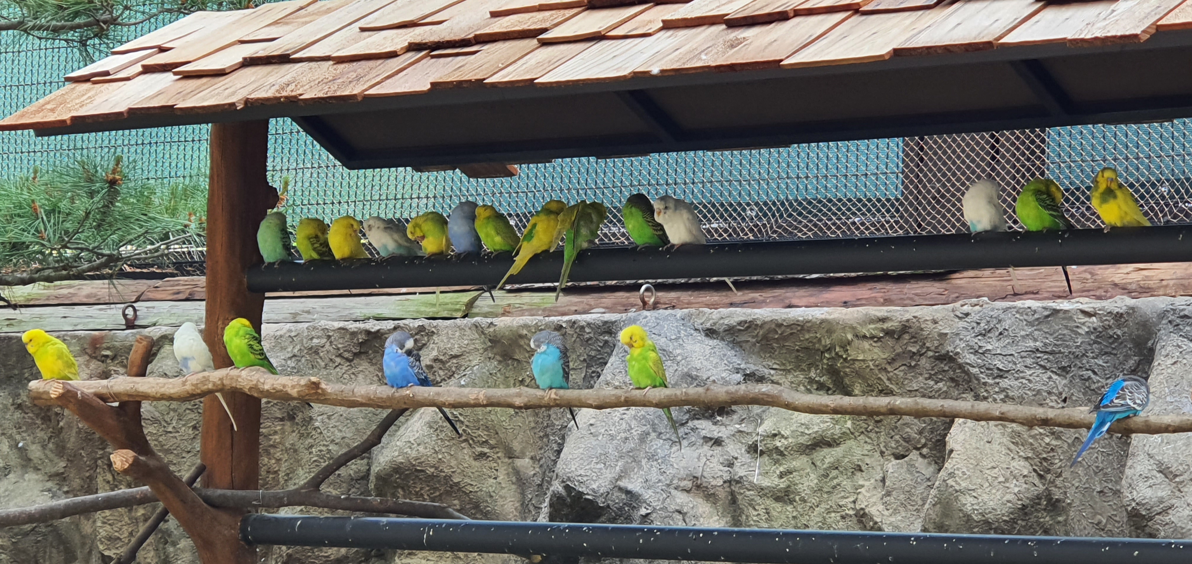 색깔이 정말 다양한 새들이 옹기종기 모여 앉아 있는 것이 정말 귀엽습니다. 새들이 민감해서 그런지 방문객들의 조그만한 움직임에도 반응을 하고 넓은 새집 안에서 이리갔다 저리 갔다 합니다.