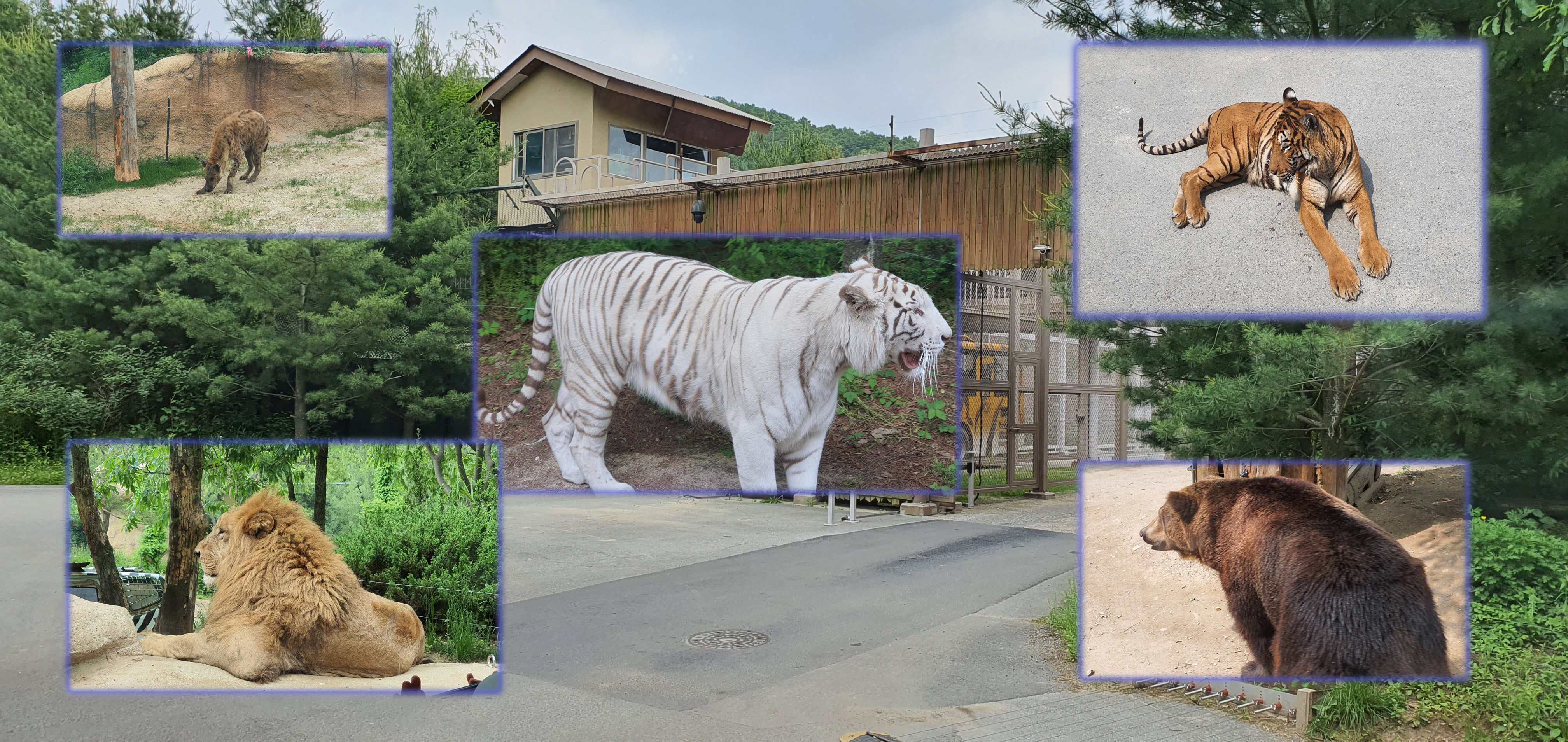 사파리월드 버스를 탑승하여 스마트폰으로 촬영한 동물들 사진입니다. 단체 버스를 이용하여서도 충분히 가까운 거리에서 관람이 가능합니다. 맹수여서 그런지 가까이에서 보면 조금 무섭습니다. 아주 어린 아이들은 무서워서 잘 못보는 경우도 있으니 참고하시기 바랍니다.