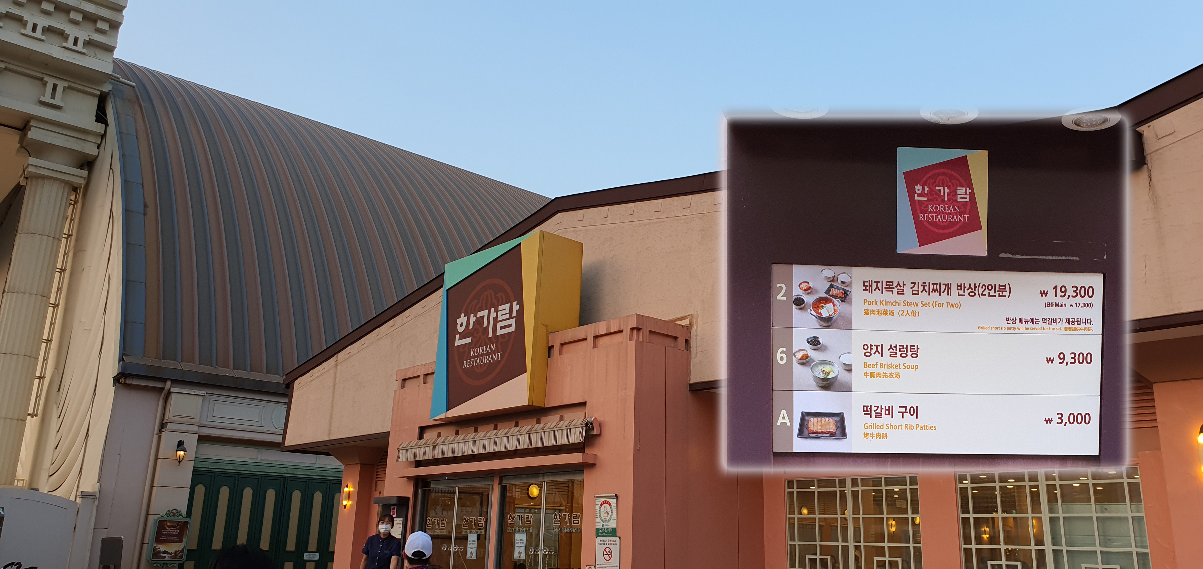 한식당이지만 메뉴가 다야하지는 않습니다. 김치찌게, 설렁탕, 떡갈비 등 3가지입니다. 설렁탕이 아이와 함께 나눠 먹을 수도 있어 개인적으로 에버랜드에서 추천하는 식사 메뉴입니다.