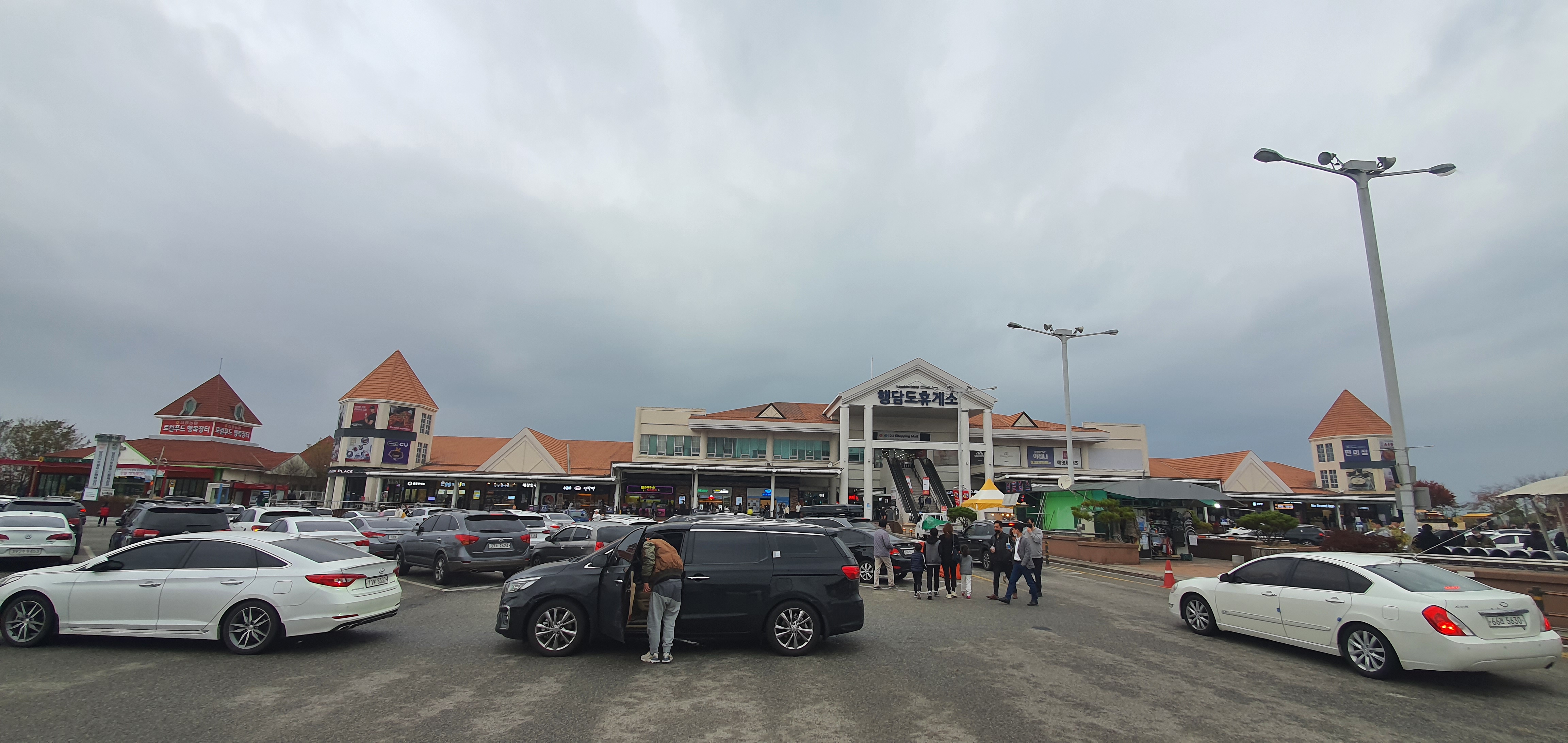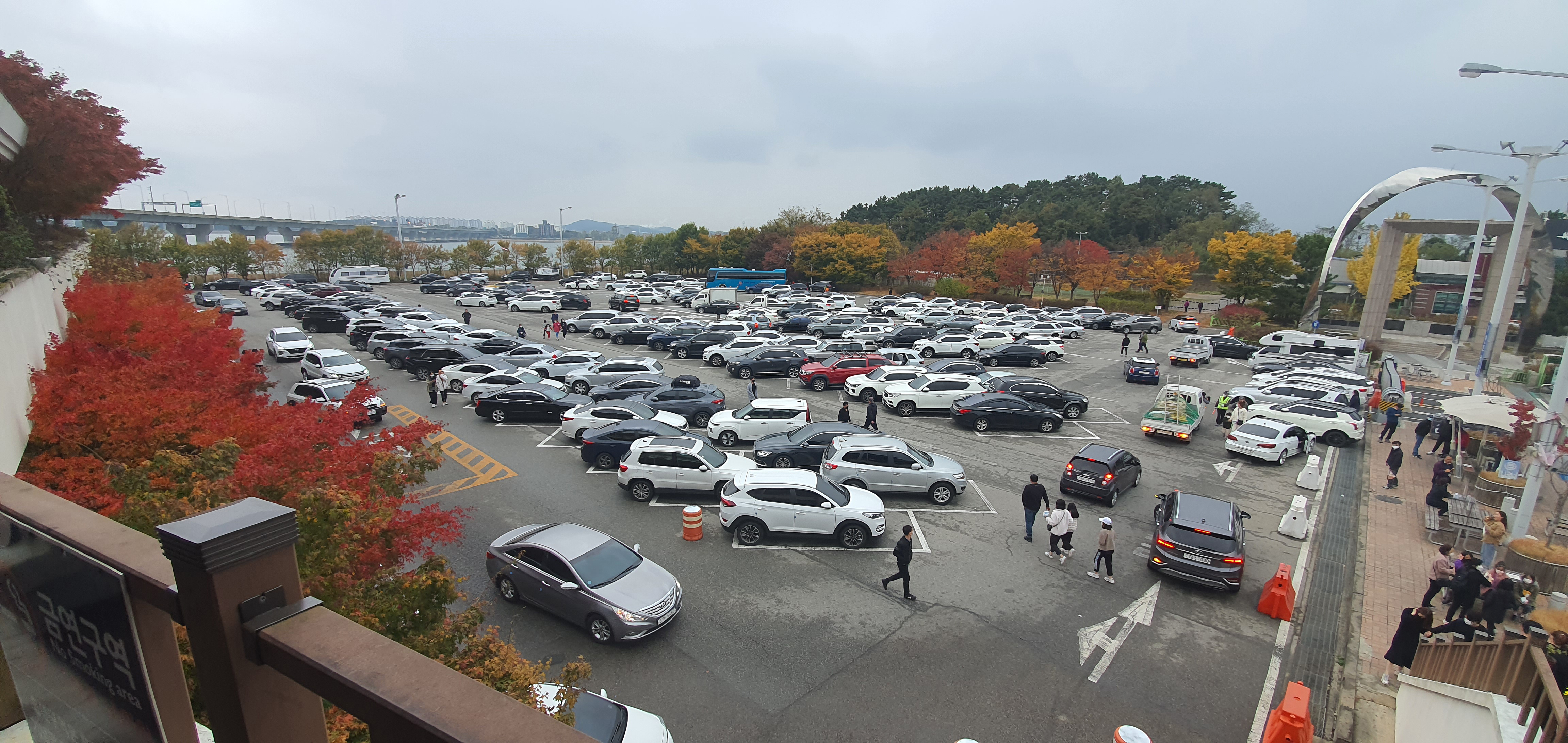 서해안고소도로 행담도휴게소는 주차장이 정말 큽니다. 위 사진은 본 건물이 있는 뒷편 주차장으로 바깥쪽 일부분을 제외하고는 많은 차량으로 가득차 있습니다.