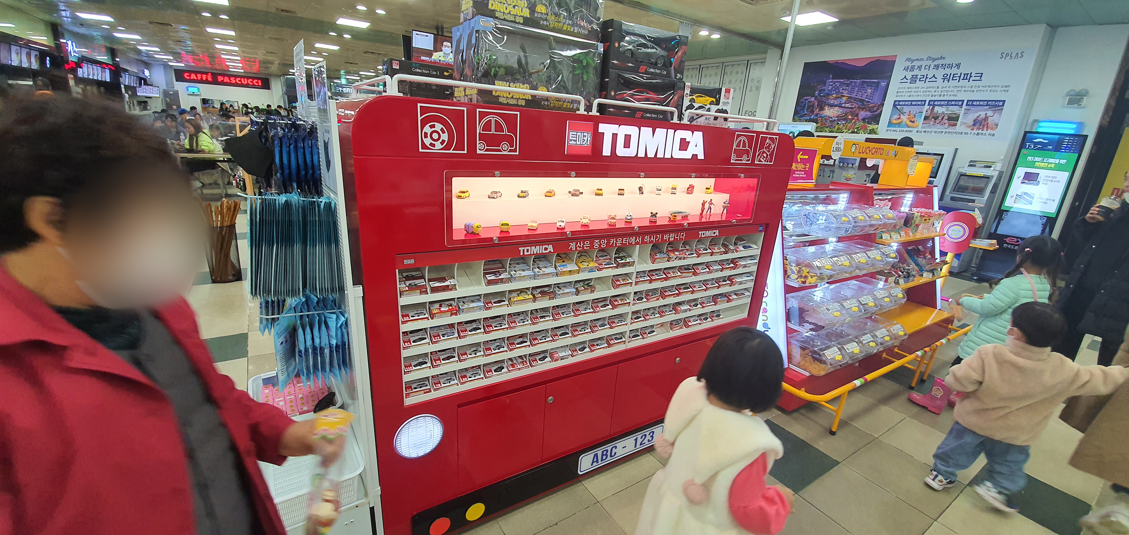 캔디 판매대 이어서 대형마트에서 볼 수 있는 토미카 판매대가 있고 뒷편으로는 아이들을 위한 다양한 장난감도 보입니다. 고속도로 휴게소에서 캐릭터 인형을 구매해 본적은 있는데 완구 형태의 장난감을 잘 구매하지는 않지만 할아버지 할머니 손을 잡은 아이들의 땡깡에 어쩔수 없이 항복하는 어르신들이 있기에 충분히 있을만한 곳에 적당히 배치되어 있었습니다.