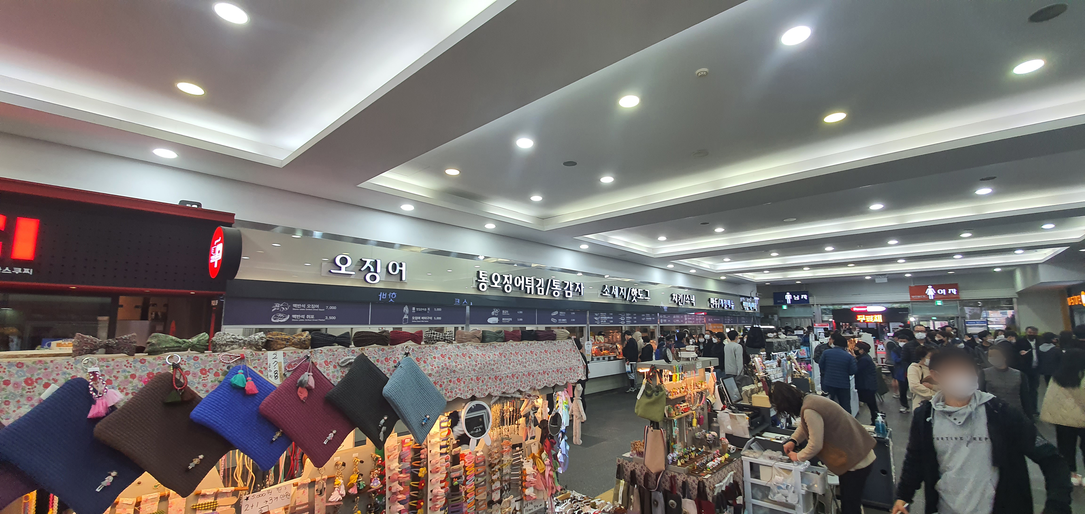화장실 가는 입구 좌측편에는 오징어, 통감자, 소세지, 핫도그 등 약간은 기름진 음식을 파는 매장으로 비치되어 있습니다. 가는 중앙에는 다양한 기념품이나 악세사리 등을 판매하는 노점이 있습니다.