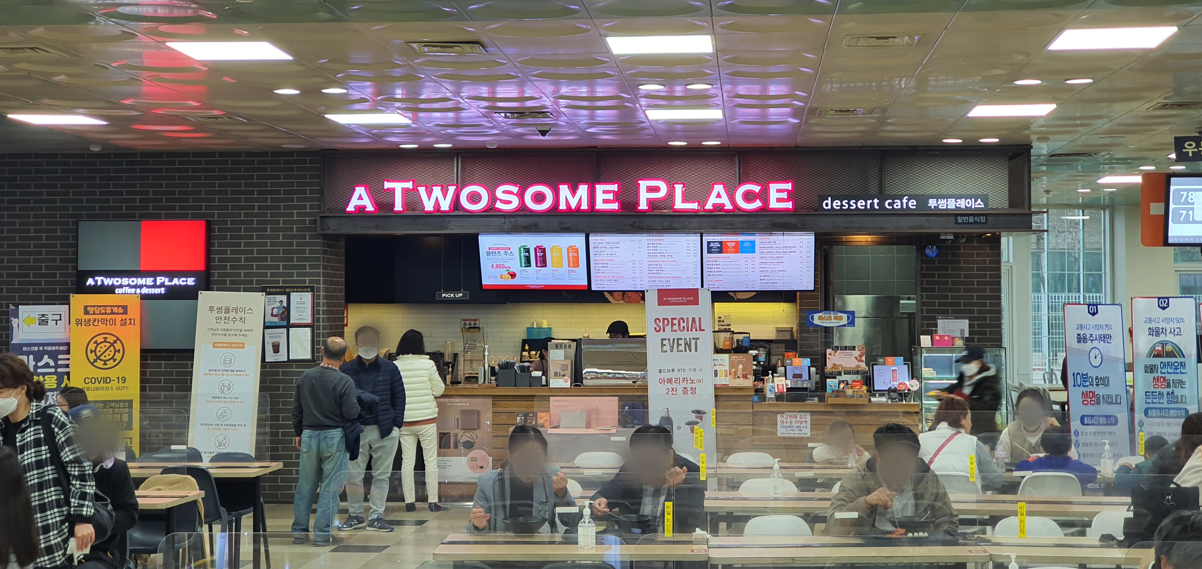 앞에서 체인형 커피전문점 파스쿠찌를 소개했는데 식당 내부에는 투썸플레이스가 있습니다. 우리나라 스타벅스 다음으로 2위인 커피전문점이지만 개인적으로 커피가 제 입맛에는 맞지 않아 잘 가지는 않습니다.