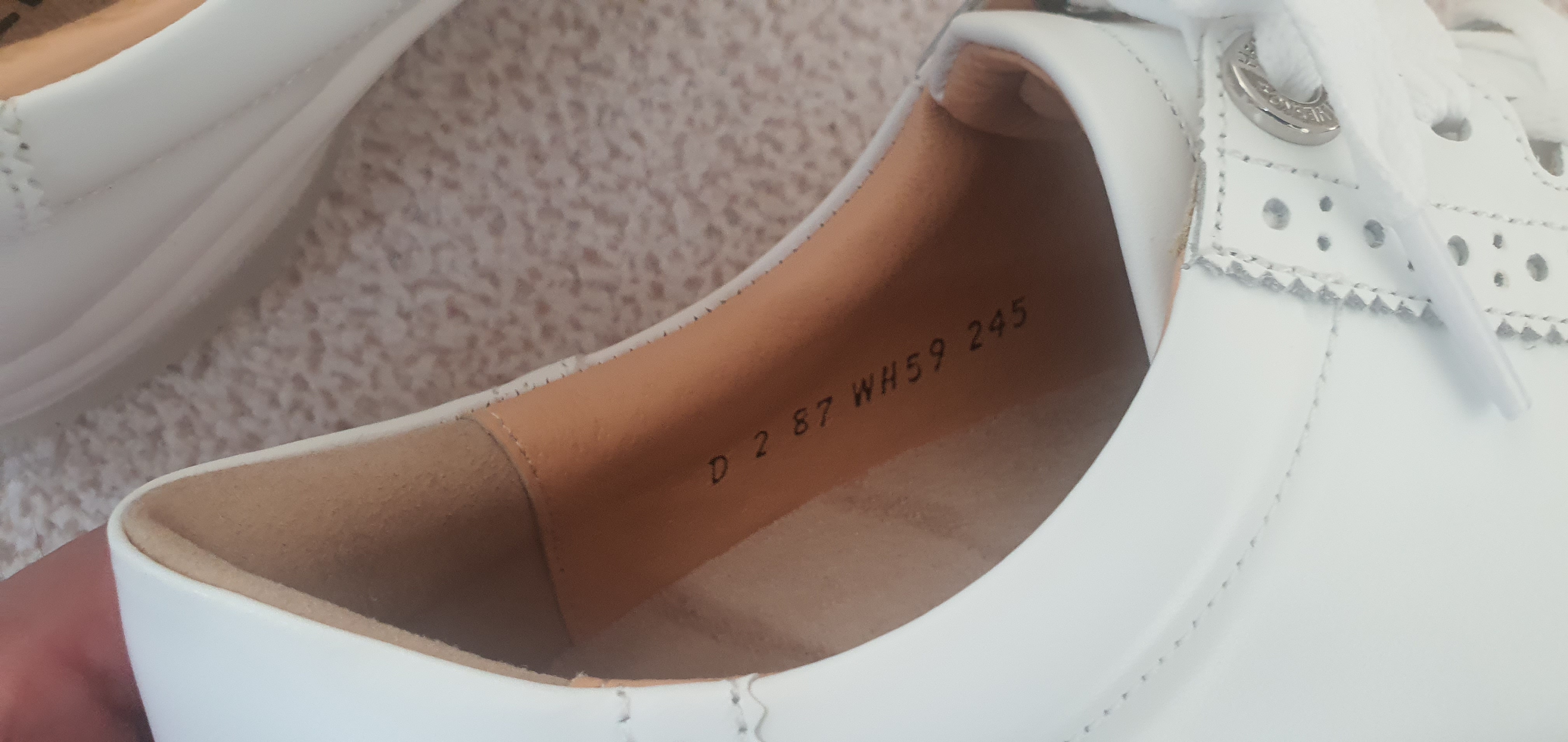 스위스 수제 명품 골프화로 유명한 헬베스코 여성골프화입니다. 모델넘버는 'D-2-87-WH59'로 첫인상은 클래식한 디자인이 먼저 눈에 띕니다. 골프브랜드로서 친근함은 느껴지지는 않지만 골프화만큼은 유명한 브랜드로 특히 여성골프화 10차 완판했던 81-WH53 스파이크 모델을 모티브로 해서 한정판 출시된 여성골프화입니다.
