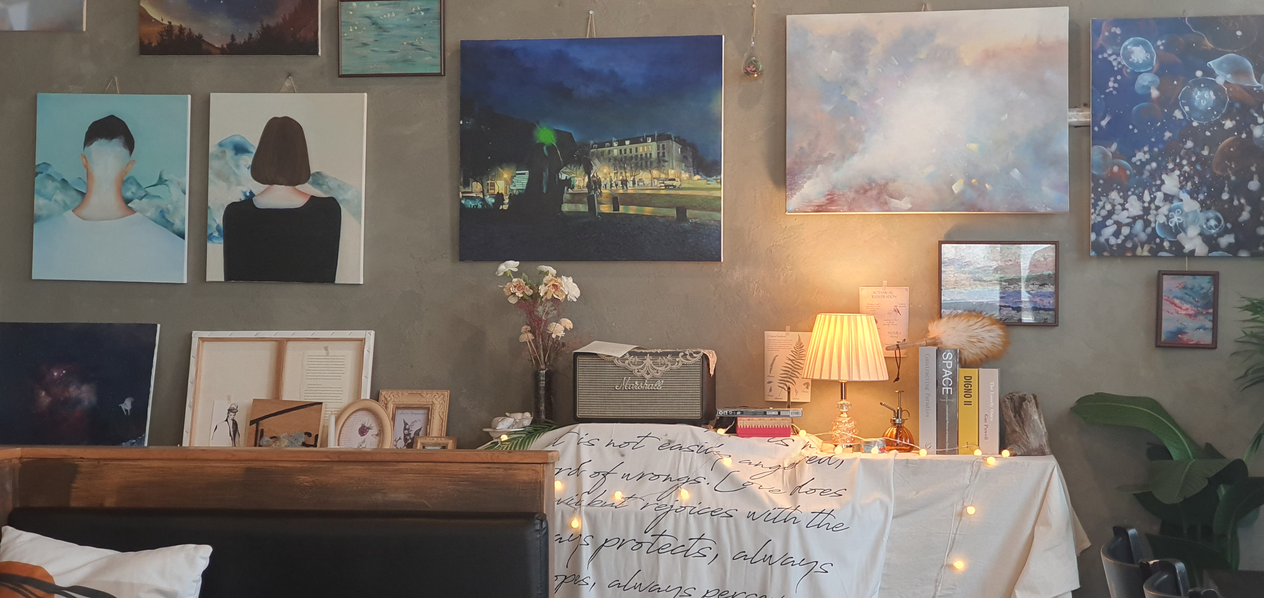 인천 부평구 청천동에 위치한 아늑한 감성카페 마이로입니다. 기존 알고 있는 카페는 아니였고 지인 추천으로 방문했습니다. 아이즈빌 쇼핑몰 옆에 위치하여 많이 지나 다니던 장소 였는데 가까운곳에 이런 감성카페가 있었다니 무엇이든지 겉모습만 보고 판단하면 안될 것 같습니다. 실내 공간적인 면에서 천장이 높아서 아늑한 느낌이 덜 할 것 같은데 인테리어를 따뜻한 느낌으로 구성하여서 들어 서자마자 아늑합니다. 특히 한쪽 벽면에 풍경화 등 가볍지 않은 톤의 그림이 걸려 있어 그러한 느낌을 받습니다.