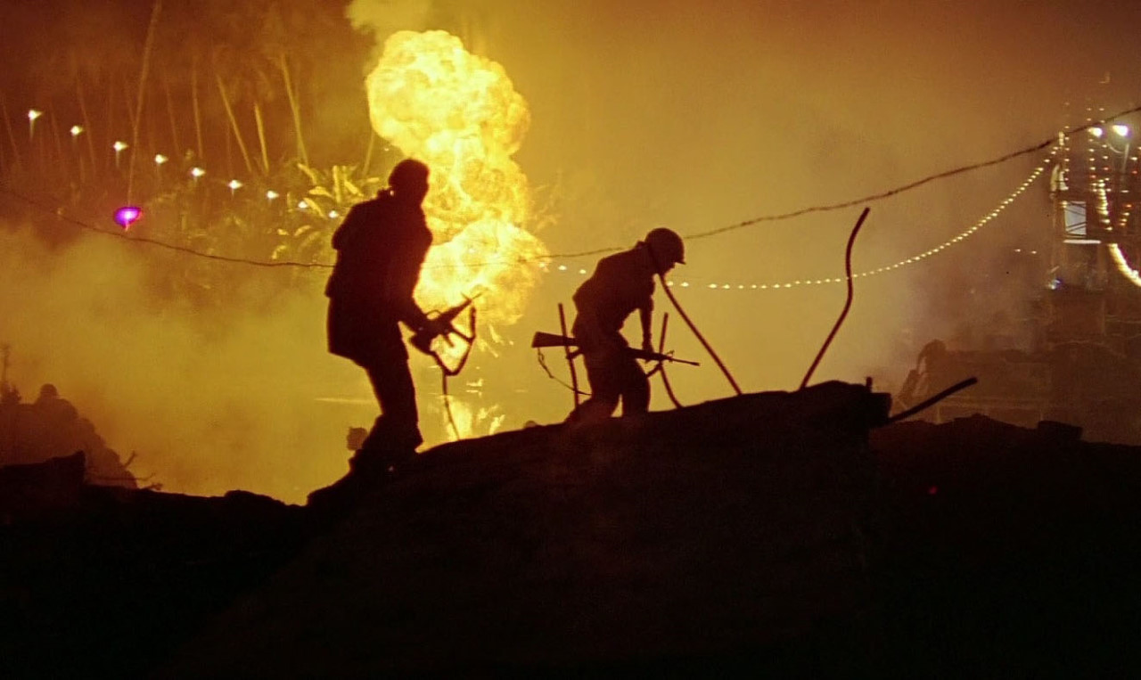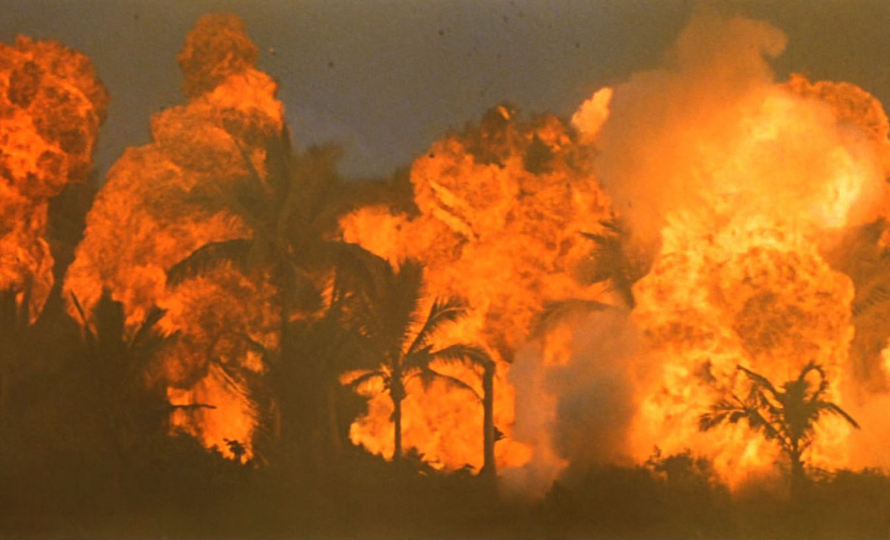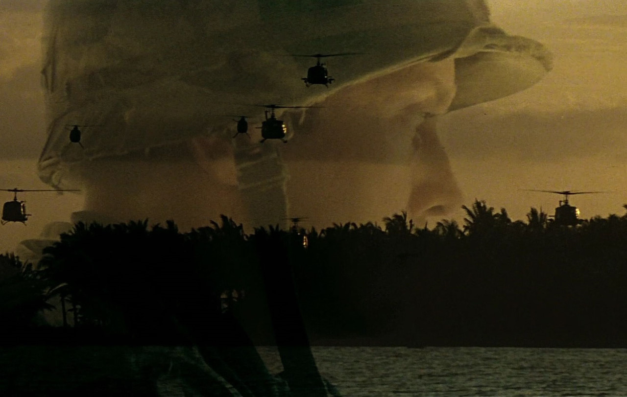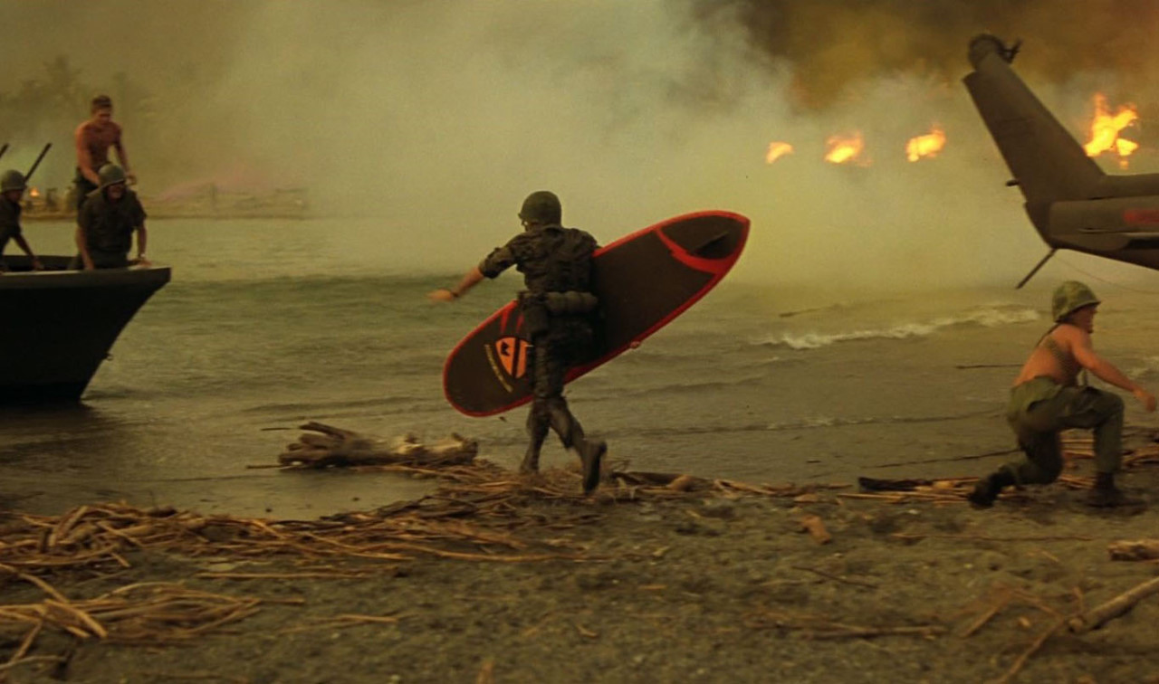 윌러드 대위가 커츠 대령 암살가 최종 목표지만 임무수행을 떠나는 여정이 중심으로 일반적인 전쟁 영화는 아니다. 전쟁 중에 킬고어 중령이 서핑을 위한 마을 공격도 정상적이지 않지만 포화와 총알이 빗발치는 한 중간에서 카우보이 모자와 선글라스에서 할말을 잃게 만든다. 적의 포화가 떨어지는 중인데 서핑을 하겠다며 웃통을 벗는 것은 물론 네이팜탄으로 적이 숨어 포격하는 밀림 숲을 완전 제압하고 "난 아침에 맡는 네이팜 냄새가 좋아"라는 대사는 피식 웃음이 나온다.