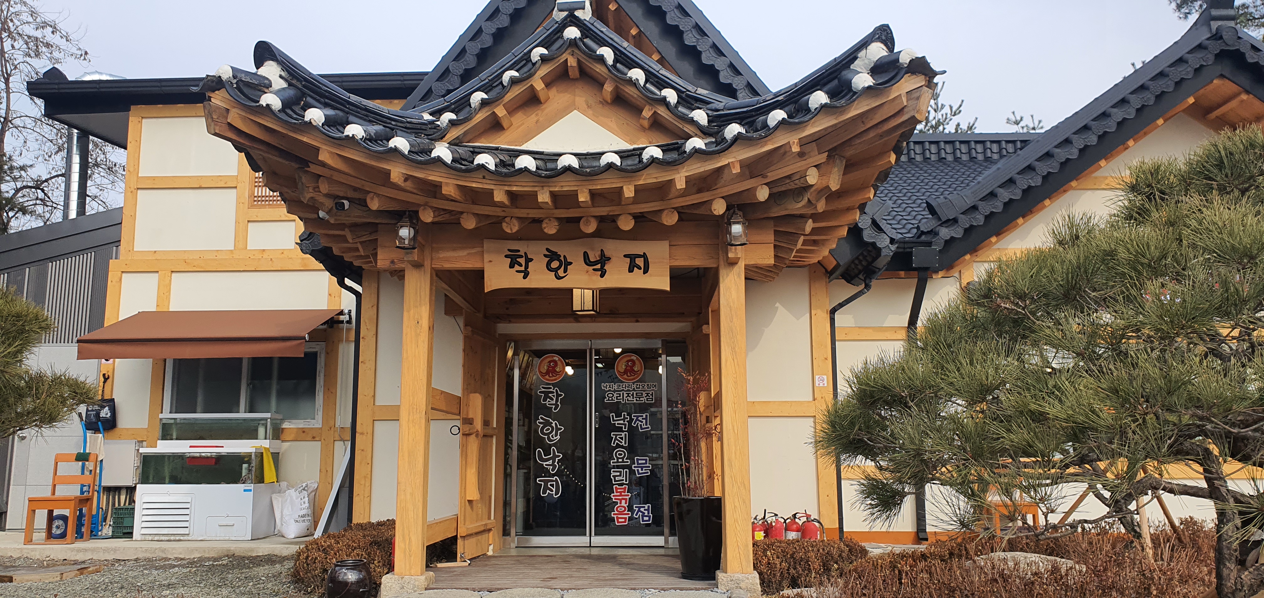 이천맛집 착한낙지 체인점은 내외관은 한옥 컨셉입니다. 들어서는 입구 처마가 꺽어지는 각도가 상당해 하늘을 찌를듯합니다. 착한낙지 입간판과 작은 등 하나까지 우리나라 전통 스타일로 되어 있습니다.