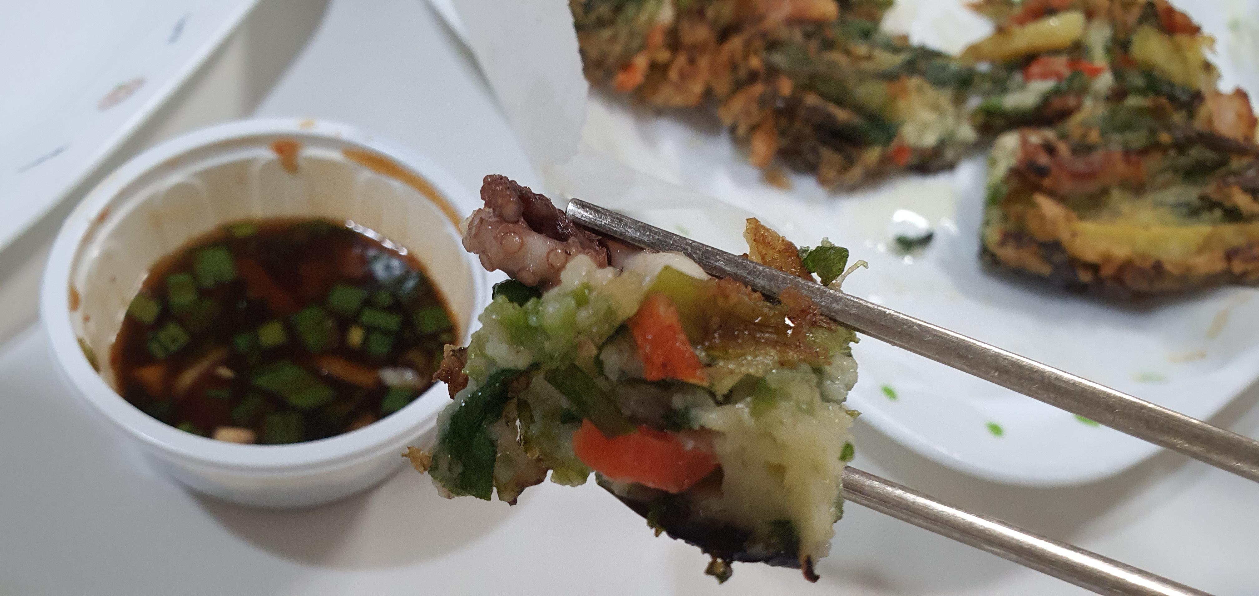 이천맛집 착한낙지 낙지해물파전은 팬피자처럼 두툼하고 다양한 채소며 해물들이 눈에 띄게 보일만큼 알찹니다. 피자조각처럼 앞접시에 담았는데 크기가 일반 파전보다 크기가 큽니다. 두께가 상당해서 조리시에 기름을 상당히 많이 사용했을 것 같습니다. 기름에 튀긴것은 무엇이든 맛있다고 하는데 정말 기름기가 베어있는 낙지해물파전은 많이 먹으면 느끼함은 있지만 해물이 풍부하게 들어가 기름기가 풍부한 맛이 있습니다. 이천맛집 착한낙지에서 우리가족은 연포탕은 다 먹었는데 해물파전은 2조각 남아 포장을 했습니다. 추가적인 밥을 먹지도 않았는데 굉장히 배가 불렀습니다. 우리는 아이들과 함께 식사하여서 그런데 보통 성인 3명이 연포탕 중과 낙지해물파전을 주문하여 먹으면 적당한 양일 것 같습니다.