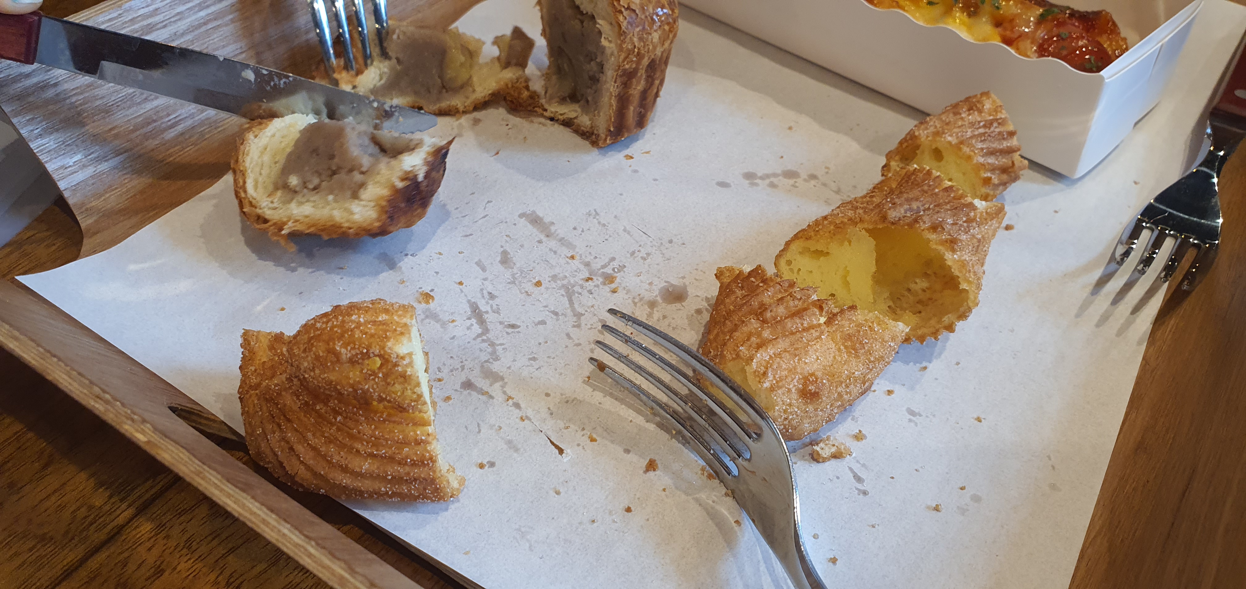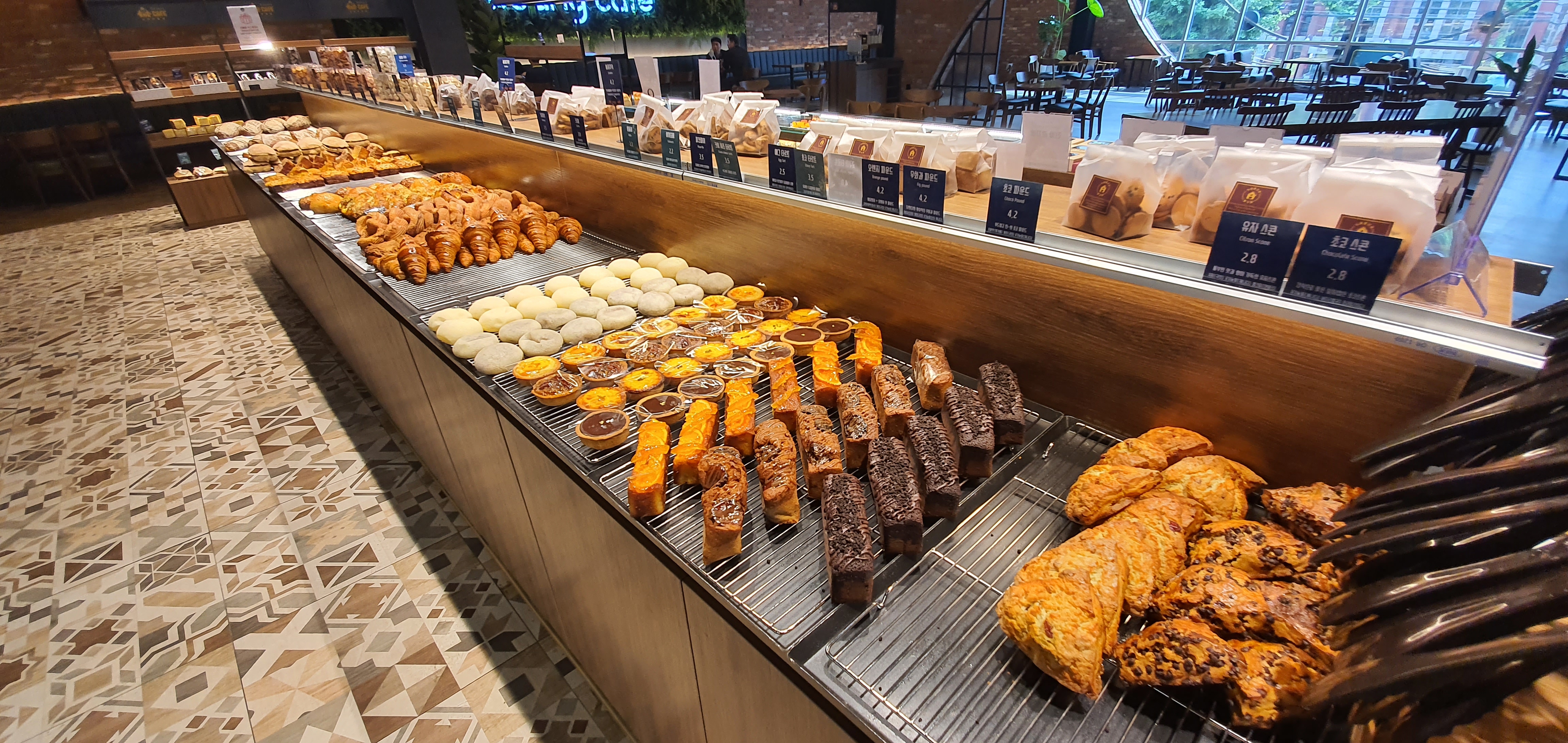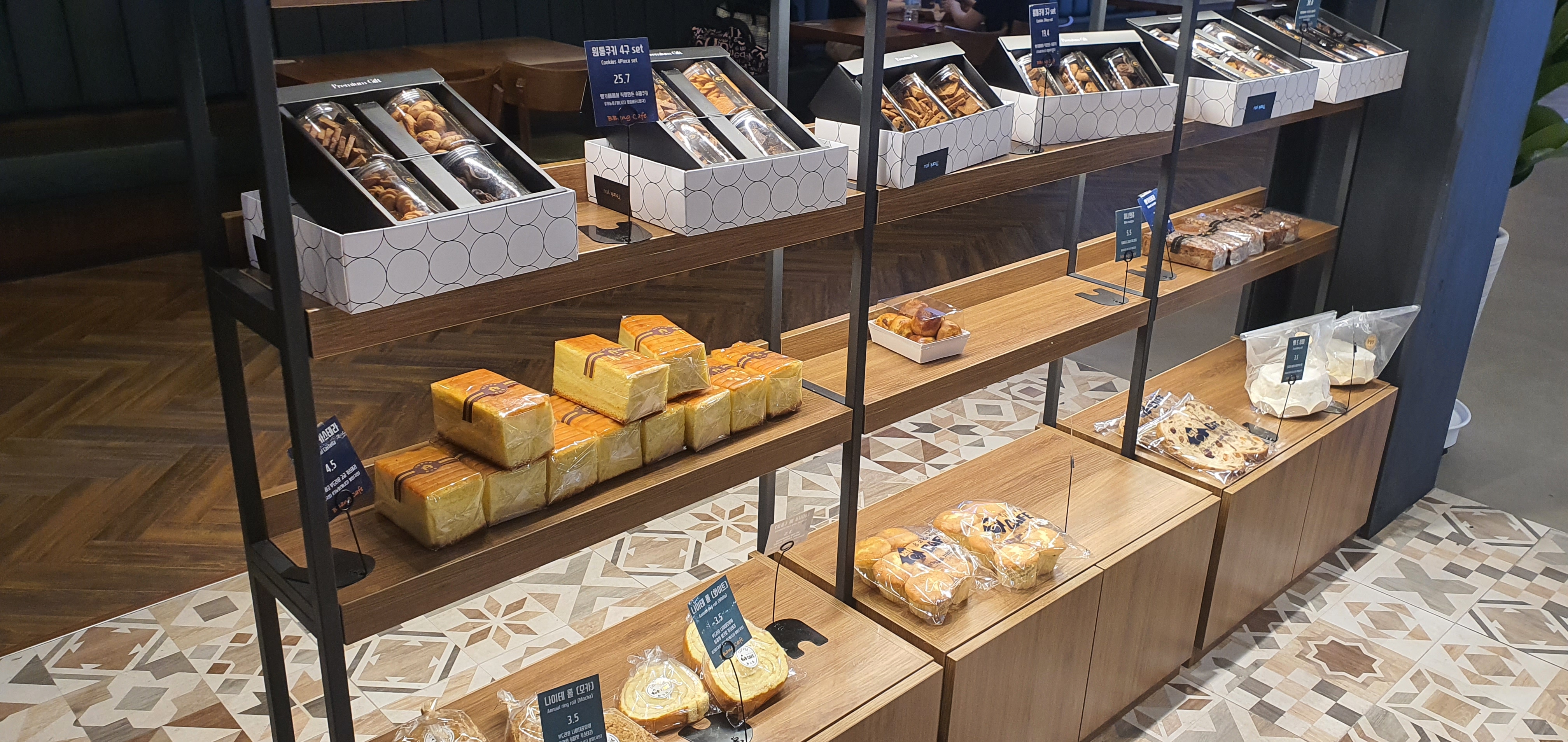 저는 개인적으로 담백한 빵을 좋아하는데 달달하고 기름진 빵들이 많아서 아쉬움이 있었습니다. 달달한 음료를 마실 때는 반대로 담백한 빵이 잘 어울린다고 생각합니다. 테이블이 많은 만큼 많은 사람들이 방문한다면 빵 양은 많아야 하지만 사람들이 원하는 빵이 많은 것이 중요합니다. 효율적인 매장 운영을 위해 선호하는 빵을 잘 선별하여 적절히 배치가 될 것이라 예상합니다.