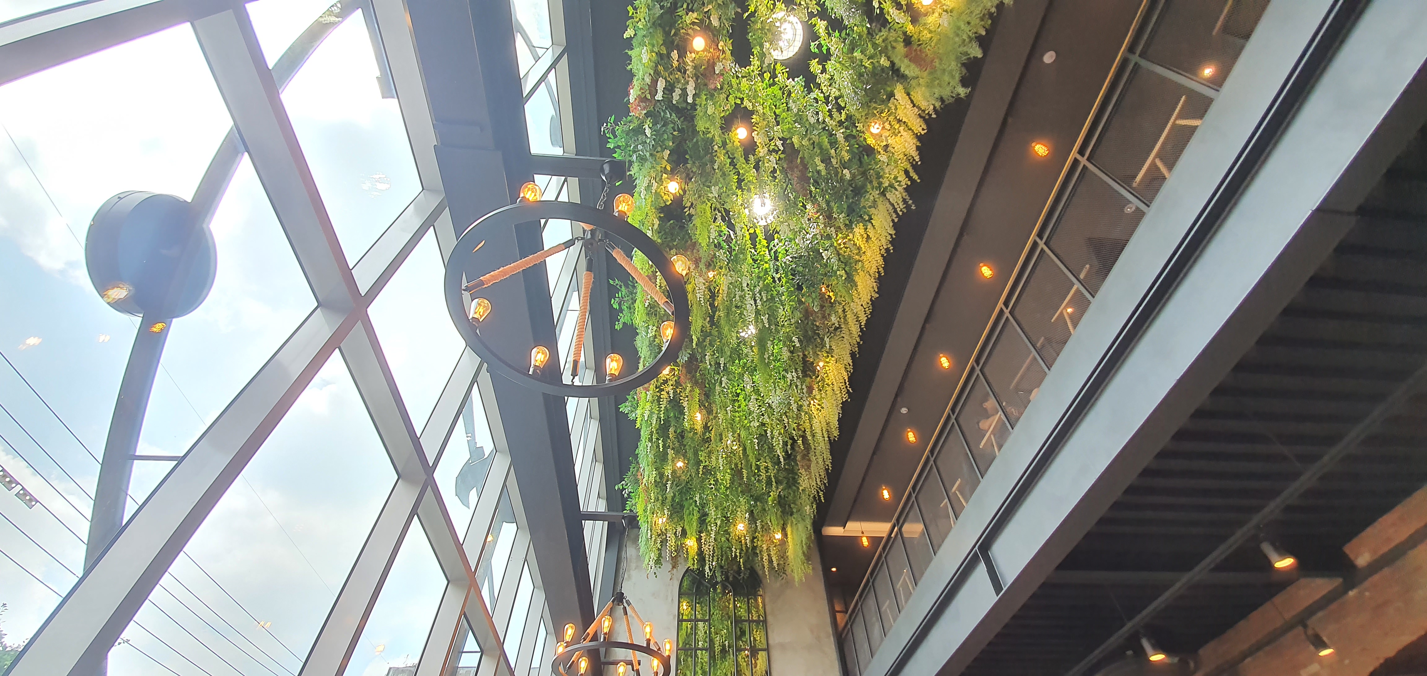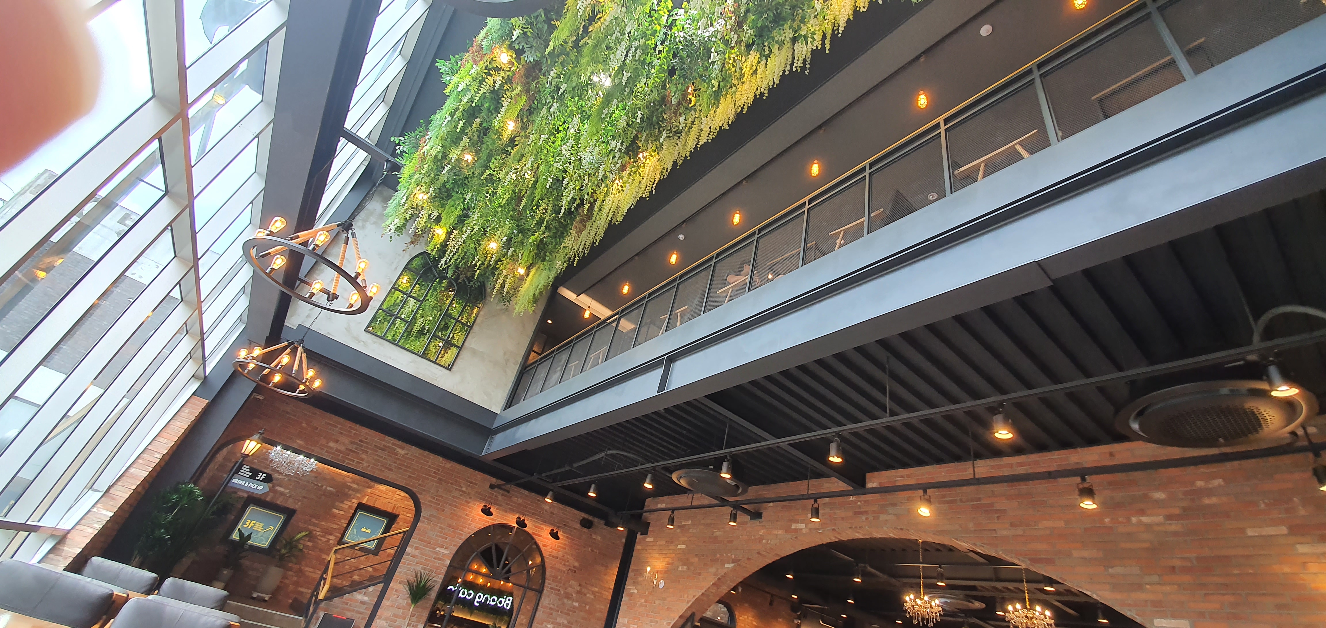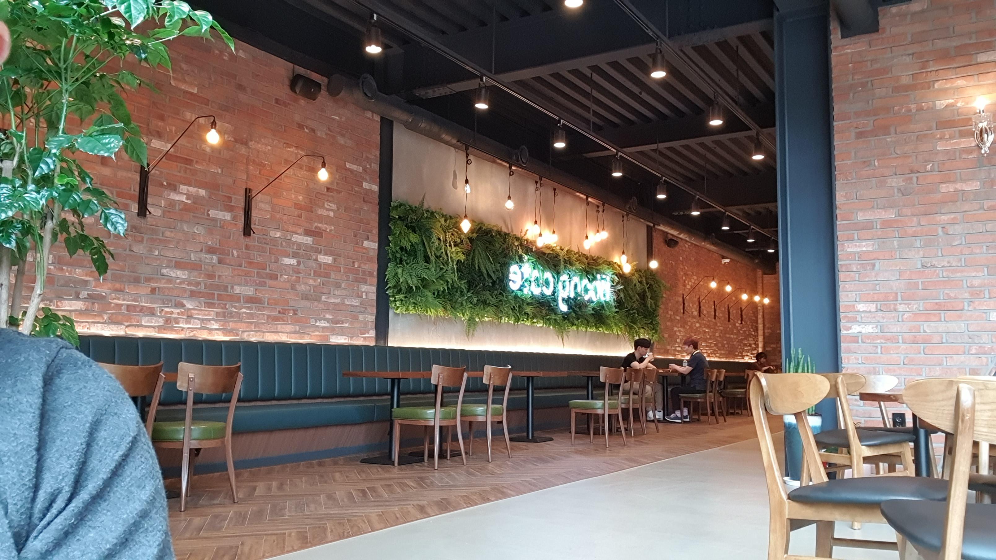 빵카페는 3층이 있습니다. 올라가 보진 않았지만 2층 창가에서 위를 올려다 보면 3층 좌석이 보입니다. 2층 공간도 넓은데 3층까지 테이블이 있으니 정말 넓은 베이커리 카페 빵카페입니다. 천장도 높고 공간이 굉장히 시원한 느낌이고 창가 천장이나 벽면에 청량감 있는 인테리어로 포인트를 주었습니다. 벽면은 너무 어둡지도 않고 약간 공간이 넓어서 약간은 따뜻한 느낌을 줄 수 있는 색으로 인테리어 되어 있습니다.