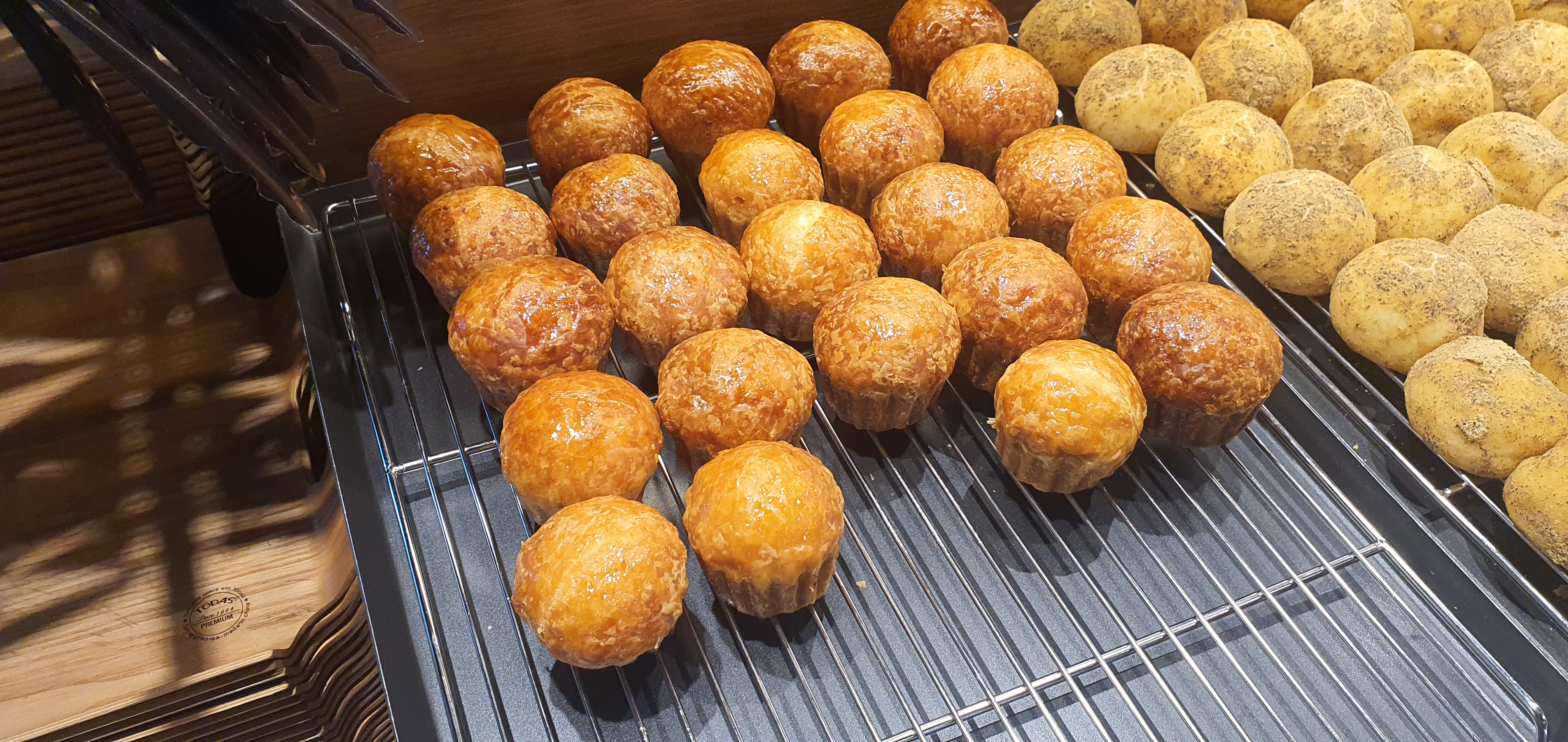 방문 시간이 오전 일찍인 시간이라 빵이 꽉 차있는 상태를 운좋게 보게 되었습니다. 방문객이 없는 가운데 다양하고 많은 빵이 일률적으로 배열된 모습이어서 빵천국에 온듯 합니다. 베이커리 카페 빵카페에는 밤, 감자, 고구마 빵뿐만 아니라 유자스콘, 무화과 파운드, 오렌지 파운드 등 우리가 일상에서 맛있게 먹는 과일과 채소를 재료로하는 빵들도 가득합니다. 이 많은 빵들을 만들려면 만드는 공간도 있어야 하지만 새벽 일찍부터 나와서 준비해야 할 것 같습니다.