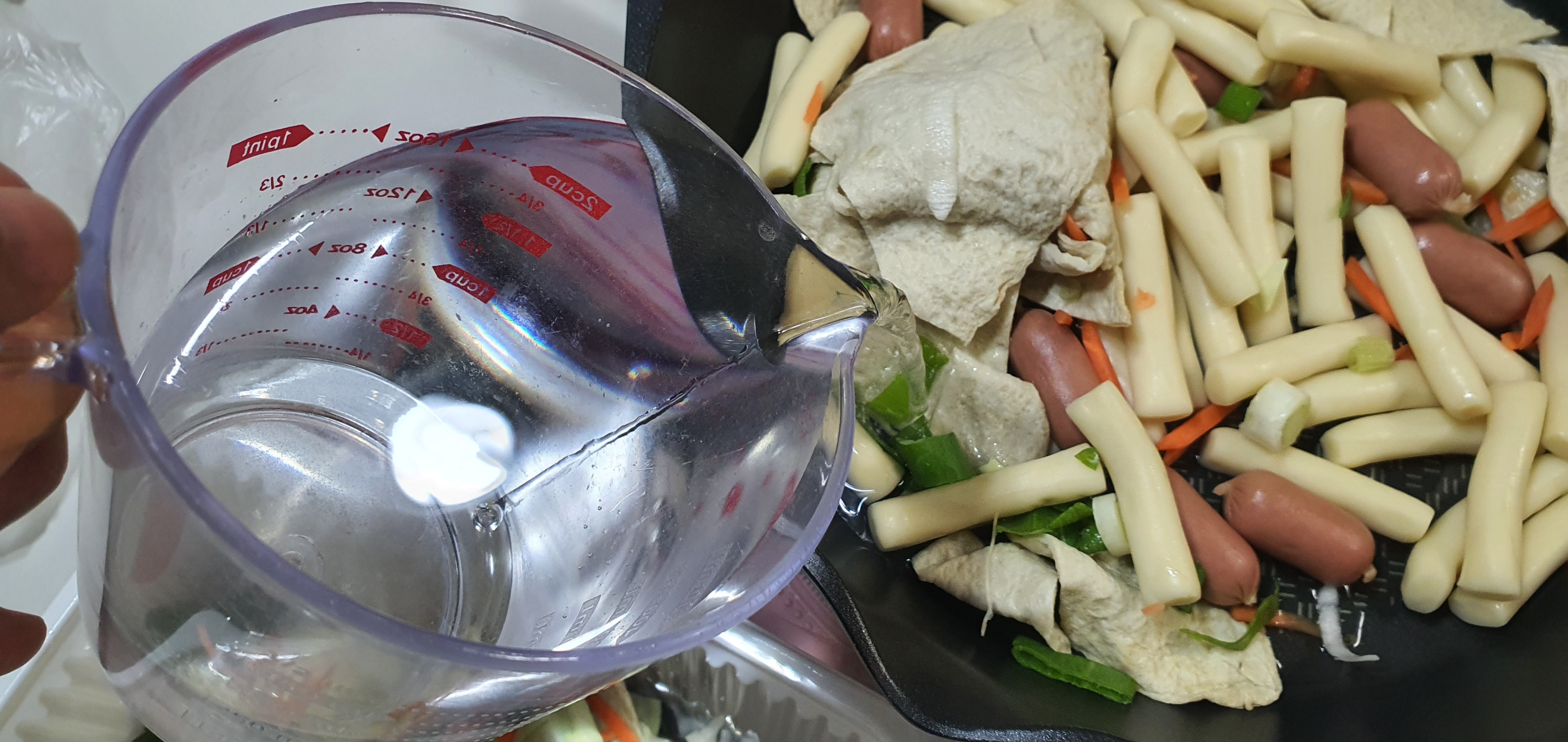 물은 1리터를 부으면 됩니다. 최근에 구입한 LG퓨리케어 정수기를 이용하여 일단 0.5리터를 받아서 물을 냄비에 부었습니다. 한번에 부었다가 조리하는 것이 약간 부담스러울 것 같아 나누어서 물을 붓기로 했습니다. 평소 음식을 할때 물이 부족해서 짜면 물을 더 부어서 간을 맞추면 되지만 처음부터 물양이 많으면 양념으로 간을 하는 것이 쉽지 않습니다.