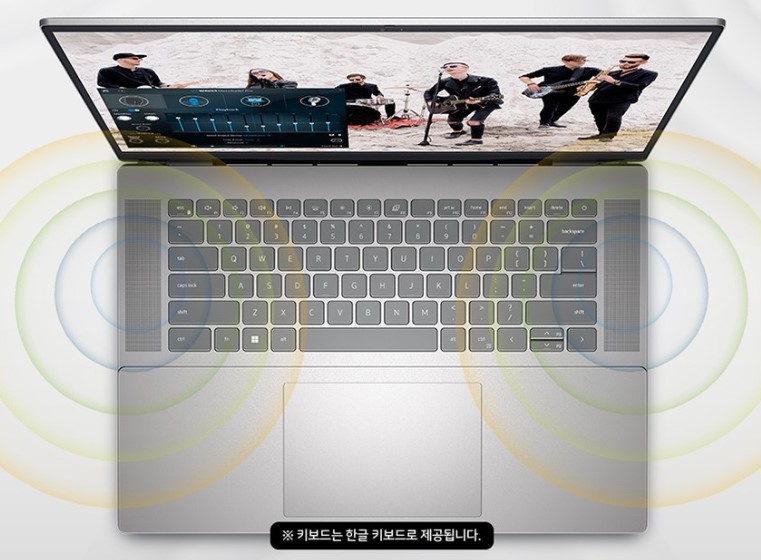 성능 및 기능적인 특징으로는 수상 경력이 있는 음향팀과 콜라보하여 음향 튜닝한 제품입니다. 그래서 노트북이지만 공간적인 사운드가 우수합니다. 그리고 인체공학적으로 키보드 자판으로 설계하여 사용자가 화면을 바라보면서 타이핑할 때 대칭형이 되게끔 하였습니다.