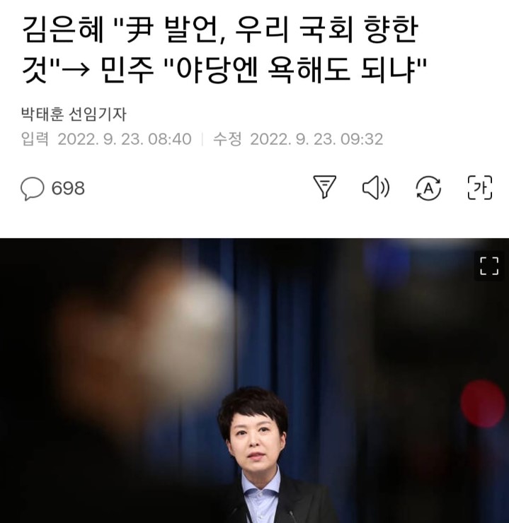 외신 보도와 다르게 김은혜 홍보수석은 미국 분위기를 고려하여 미국 국회 또는 바이든 대통령이 아니라 우리 대한민국 국회를 향한 말이었다고 대응했습니다. 그리고 우리 국회에 대한 사과보다는 경청을 하겠다는 표현을 언급했습니다. 이것이 대통령 욕설에 대한 적절한 대응적 답변이 맞는지 의심스럽습니다.