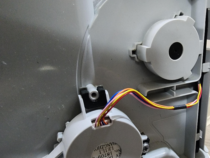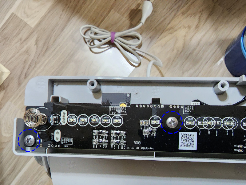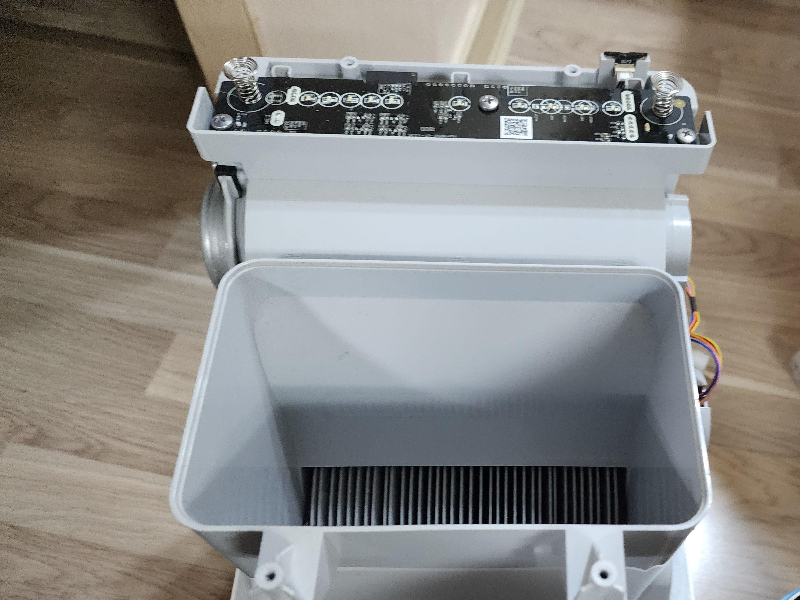 샤오미 2세대 가습기 컨트롤하는 기판으로 향하는 선이 크게 2가지가 있습니다. 검은색과 색깔 있는 선입니다. 색깔 있는 선이 모터선입니다. 커넥터로 결합되어 있어 분리와 새 모터 결합을 위해서는 기판을 분리하는 것이 좋습니다. 위 좌측 하단 사진에서 기판과 결합되어 있는 나사 3개를 분리하면 됩니다. 색깔 있는 모터선은 검은색 선과 꼬여 있어 완전히 분리를 위해서는 잘라야 했습니다.