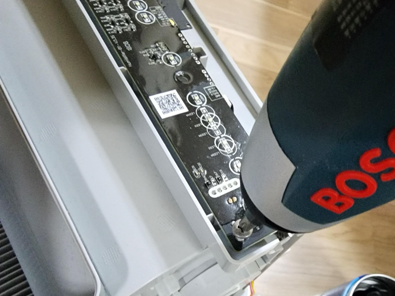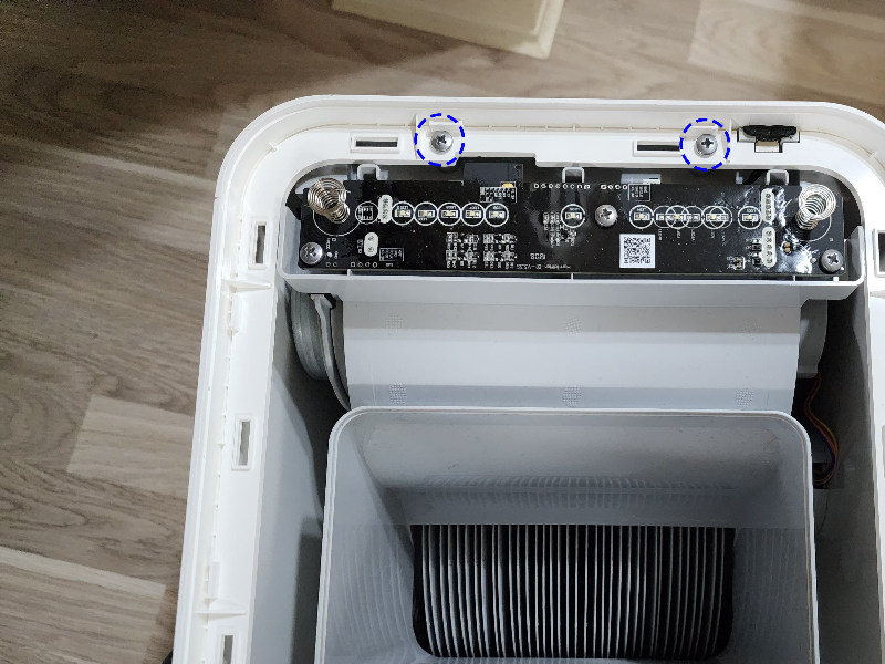 상단면 덮개를 분리하면 둘러싼 옆면을 분리해야 합니다. 분리를 위해서는 위 우측사진 청색 점선 4개 부분의 나사를 분리하면 됩니다.