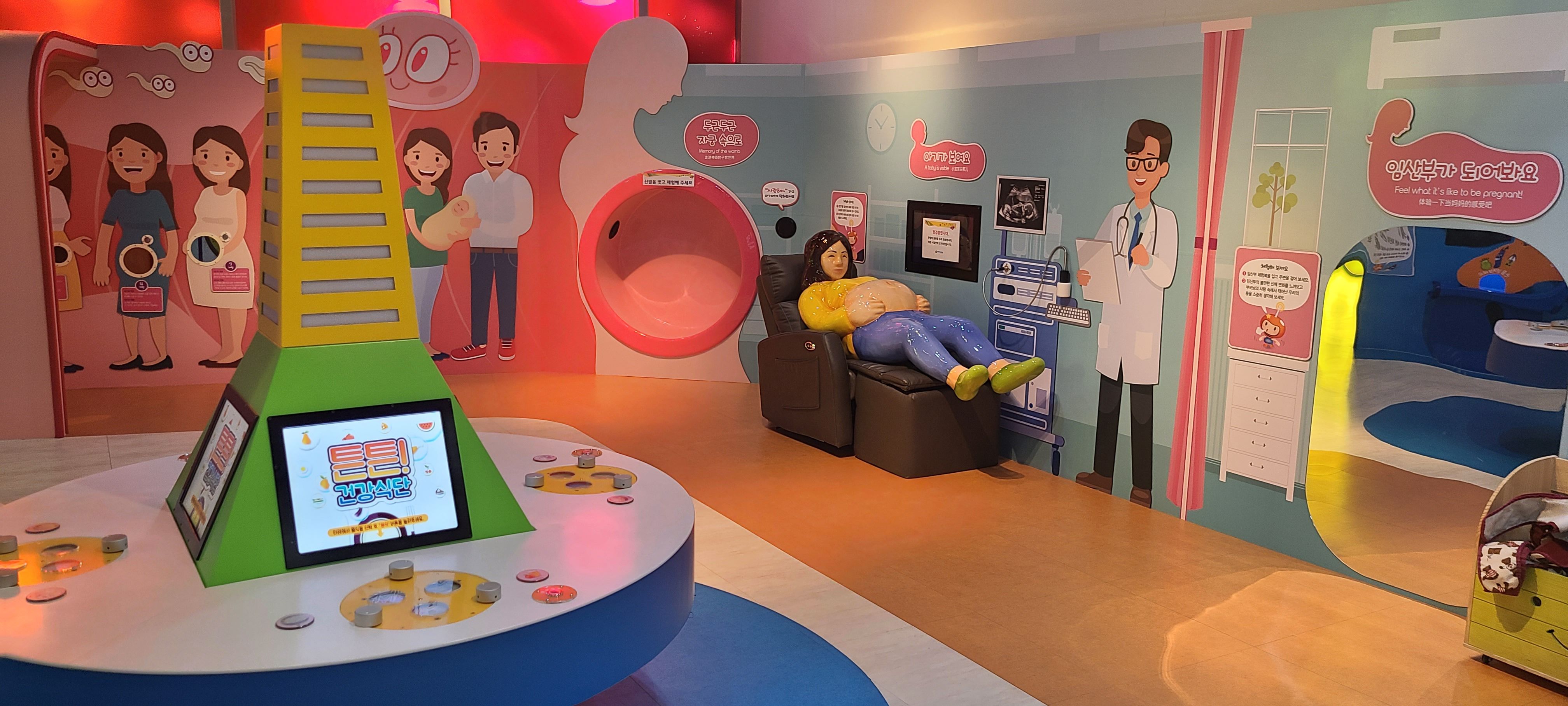 나는 어떻게 태어났을까요? 엄마 뱃속의 아기가 어떻게 커가는지 개월 수에 따라 성장과정을 확인할 수 있습니다. 아이가 책으로는 보았지만 이렇게 실제 모형으로 보니 신기해했습니다. 마지막엔 엄마 뱃속에 들어가 볼 수 있는 공간도 있답니다. 인천 가볼 만한 곳 중에서 이처럼 체험과 함께 교육적인 내용이 포함된 시설은 잘 갖춰진 시설은 없는 것 같습니다.