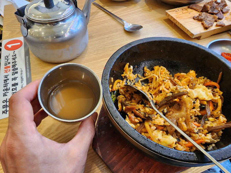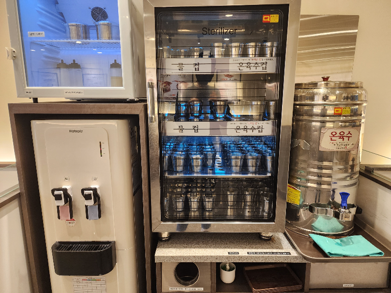 개인적으로 부평 육쌈냉면에서 가장 마음에 들었던 것이 음식도 맛이 좋지만 저는 온육수입니다. 짬짤 하면서 특유의 육수 국물을 비빔밥을 비빌 때도 몇 숟가락 넣었습니다. 그러면 비빔밥을 비벼보면 윤기가 나기도 하고 감칠맛이 더욱 좋습니다. 온육수를 너무 좋아해서 3 ~ 4번은 리필해 가면서 먹었습니다.