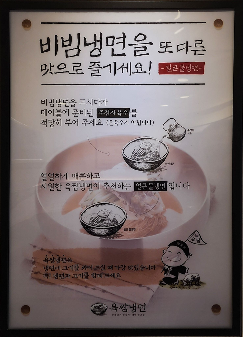 육쌈냉면은 흔히 고깃집에서 식후 냉면을 먹을 때 남는 고기와 먹게 되면 개운하고 쫄깃한 면발에 육질의 식감이 더해지는 그 맛을 느낄 수 있는 맛집입니다. 젊은이들은 많이 찾는 부평 문화의거리에 위치한 육쌈냉면은 가격도 저렴하면서 맛도 훌륭한 음식점입니다.