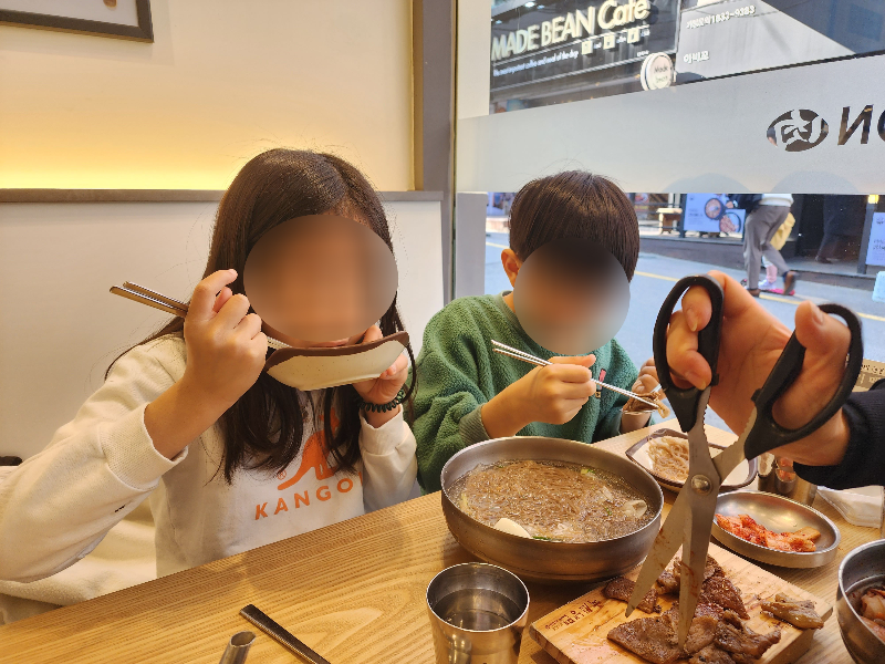 아이들도 오랜만에 사람 많은 중심가 골목을 돌아 다녀서 그런지 허기졌나 봅니다. 부평 문화의거리 맛집 냉면이기에 맛있기도 하며 고기와 함께 먹으면 든든해서 있어 잘 먹었습니다. 저는 개인적으로 냉면과 함께 먹으면 느끼한 맛을 잡아 주니까 더욱 좋습니다. 비빔냉면의 경우 반쯤 먹다 안내 그림과 같이 얼큰물냉면으로도 먹을 수 있습니다. 그러니까 비빔냉면은 두 가지 맛으로 즐길 수 있습니다.