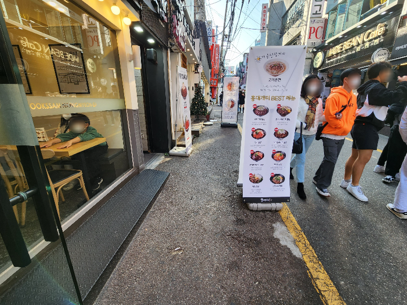 제가 방문한 시간은 오전 일찍이었고 당일 쌀쌀해진 날씨 때문인지 거리에 사람들이 많이 있지는 않았습니다. 그래도 점심 시간이 가까워서 그런지 육쌈냉면 식당 안은 사람들이 좀 있었습니다.
