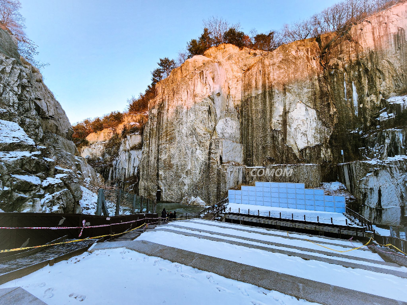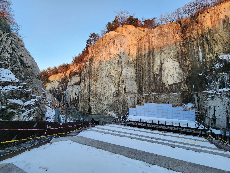 지금은 한겨울이라 공연 프로그램이 없지만 방문객들이 많은 봄부터 가을까지는 다채로운 공연 프로그램이 이곳에서 계획되지 않을까 예상해 봅니다. 병풍처럼 새겨진 돌을 배경으로 공연을 관람하면 좋을 것 같습니다.