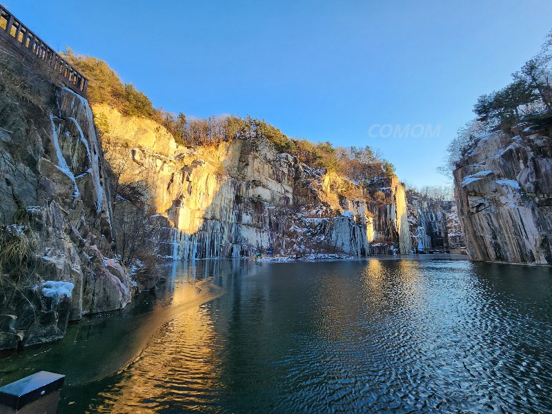 이색적인 배경이라 그런지 드라마 촬영 장소로도 유명합니다. '푸른바다 전설', '달의 여인', '화유기', 날 녹여줘요' 등이 촬영되었습니다. 물은 인공적으로 만든 것 같은데 깊이가 무려 20미터가 된다고 하니 약간은 펜스 가까이 가기가 두렵기도 했습니다. 그래서 펜스가 2중으로 되어 있습니다.