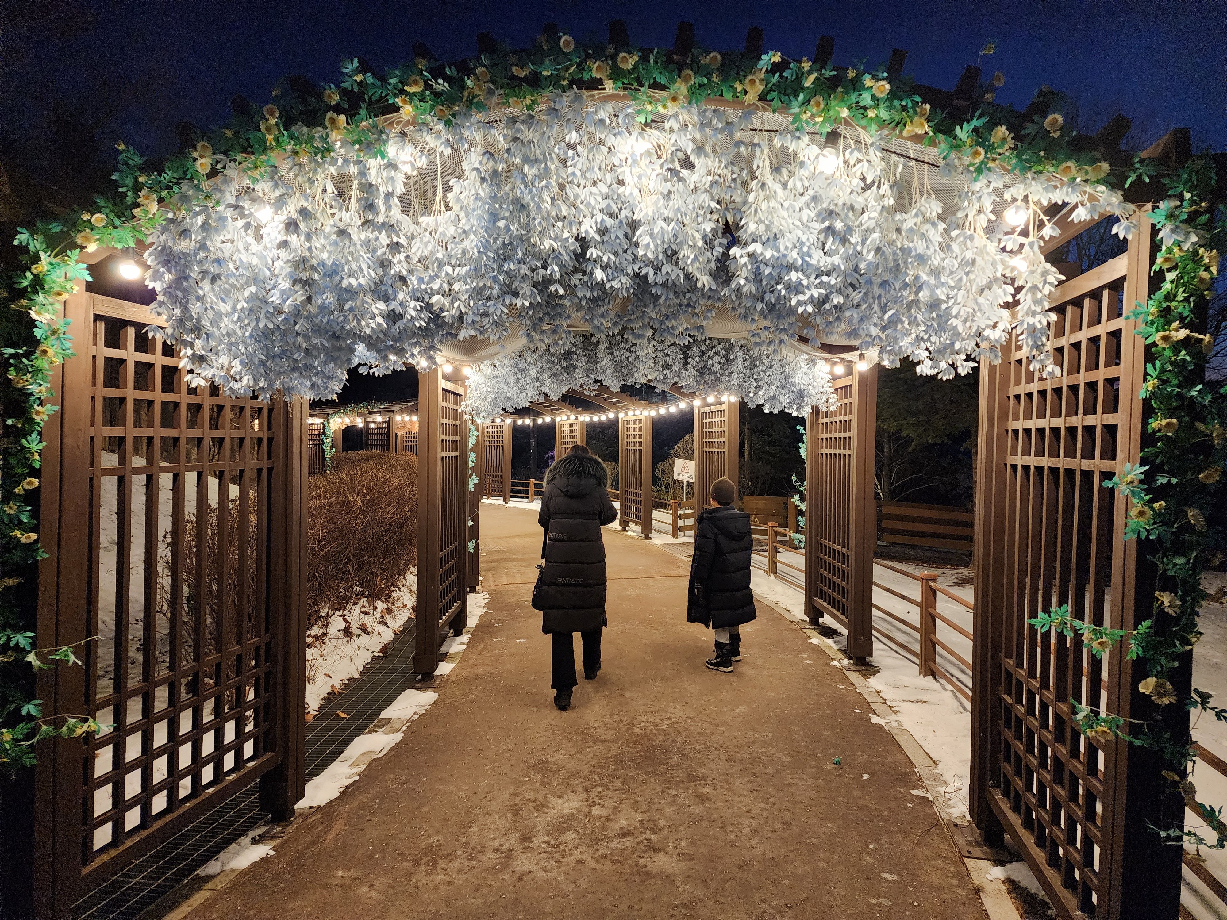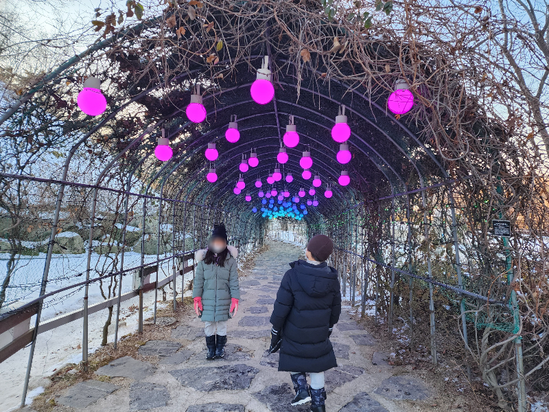 조각공원을 지나면 색이 변화되는 LED 전구가 달린 터널이 있습니다. 중간마다 추억하기 위한 사진 촬영 장소가 잘 마련되어 있습니다. 조각 공원에는 약간 민망한 조각상도 있으니 유념하시기 바랍니다. 제가 방문했을 때 조각공원에 바람이 어찌나 불던지 체감온도가 뚝 떨어져서 몸을 녹이기 위해서 커피밸리로 향했습니다.