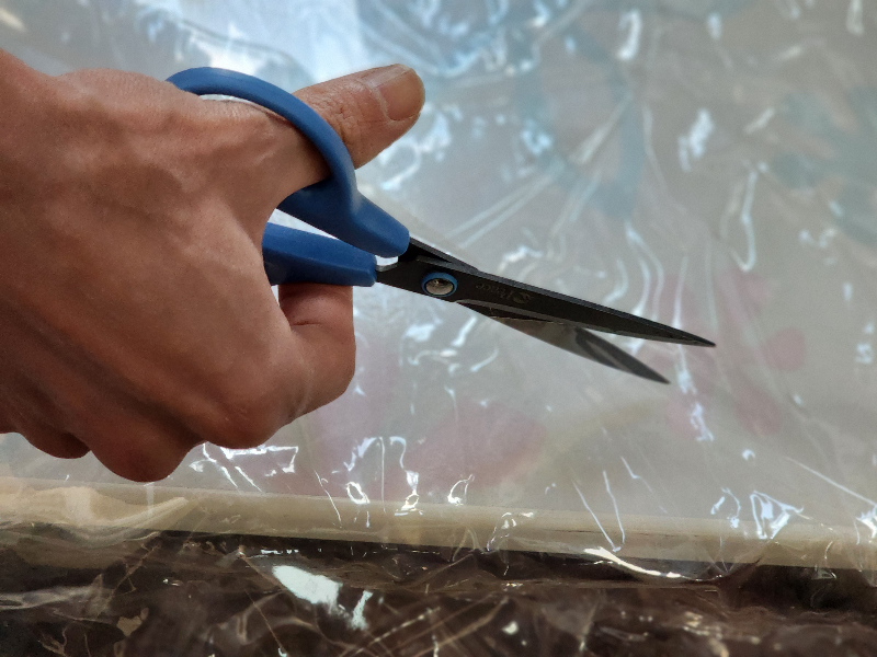 구입한 TPU 필름을 손상된 우레탄창 크기에 맞게 잘랐습니다. TPU 필름이 텐트에 부착되어 있는 투명창 보다 어찌나 부드럽던지 텐트 우레탄창 만들기를 하고 싶을 정도였습니다. 저같이 손상된 부분을 수선 보다는 창을 만들기 위해서 구입하시는 분들도 있을 것 같습니다.