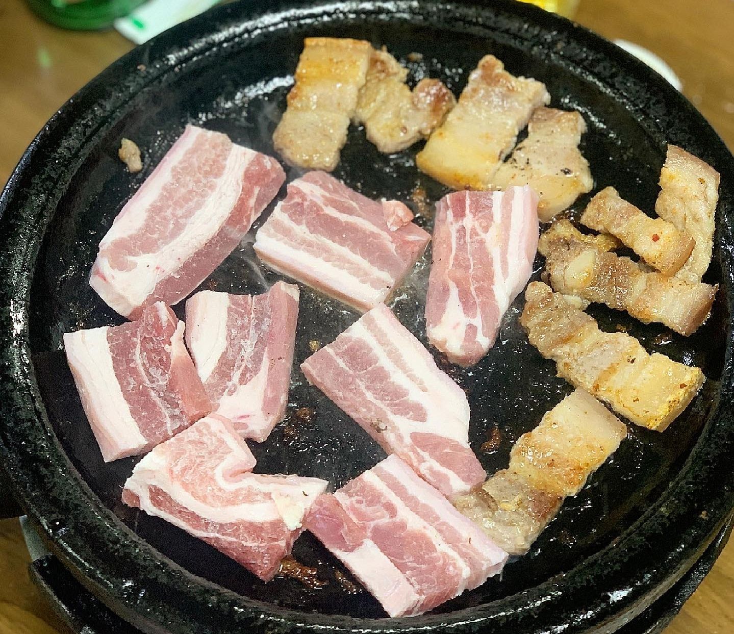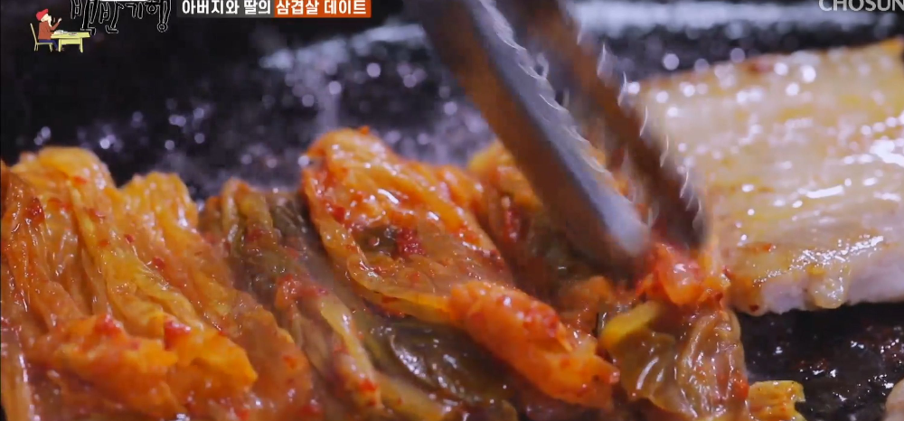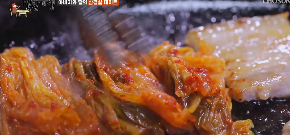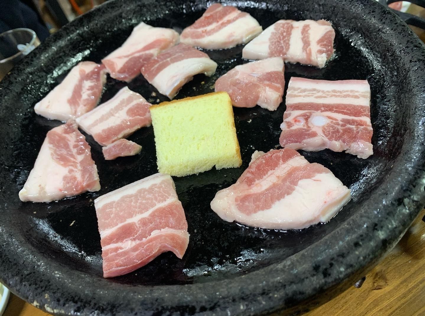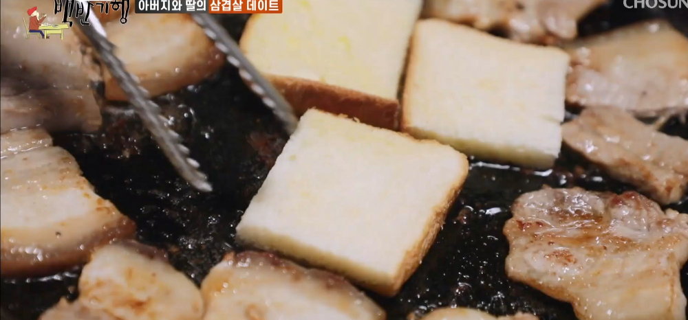 식빵으로 기름을 적당히 제거하고 기름이 있는 불판에는 3년 된 묵은 김치를 올려놓으며 더욱 맛있게 먹을 수 있습니다. 김치가 그냥 먹으면 별로인데 돌판에 굽거나 된장찌개에 넣어 먹으로 정말 맛이 있던 게 묵은 김치였기 때문입니다.