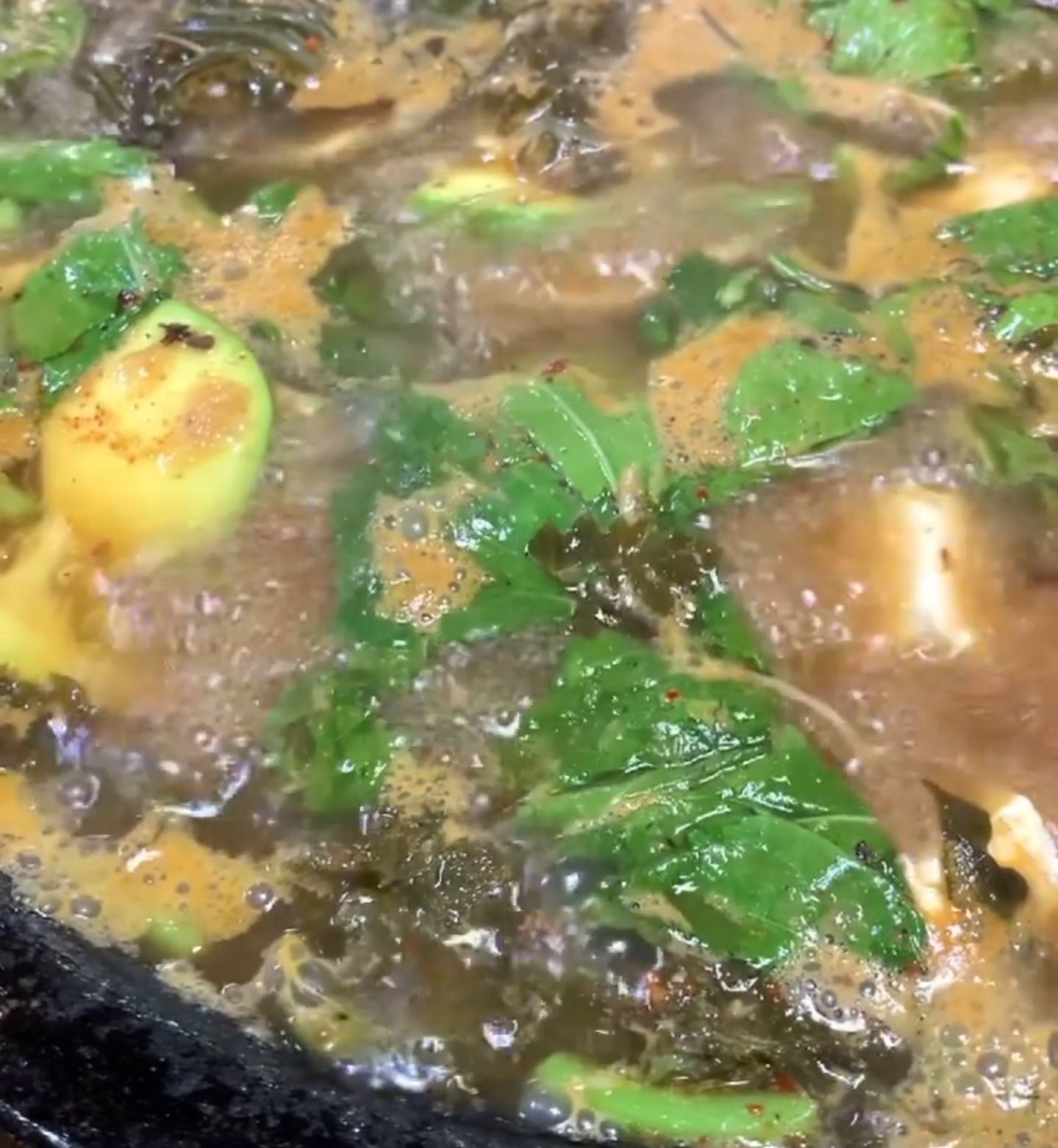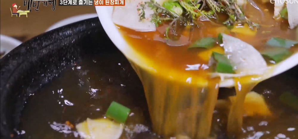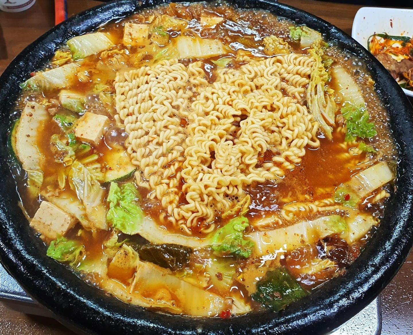 느끼한 삼겹살을 다 먹은 후에는 개운한 된장찌개가 자연스럽게 땡깁니다. 된장찌개를 주문하면 다먹은 돌판을 깨끗하게 정리한 후에 된장찌개를 부어주십니다. 백반기행 평창맛집 부산식육식당 된장 특징은 뿌리가 싱싱하며 향이 가득한 큼지막한 냉이가 들어가 있으며 된장 국물 색이 검은색에 가깝습니다. 쌈쌀하면서 된장 특유의 짠맛을 느낄 수 있는 시골맛입니다. 된장찌개를 먹다가 칼칼하게 먹고 싶으면 묵은 김치와 라면 사리를 넣어 먹어도 정말 별미입니다.