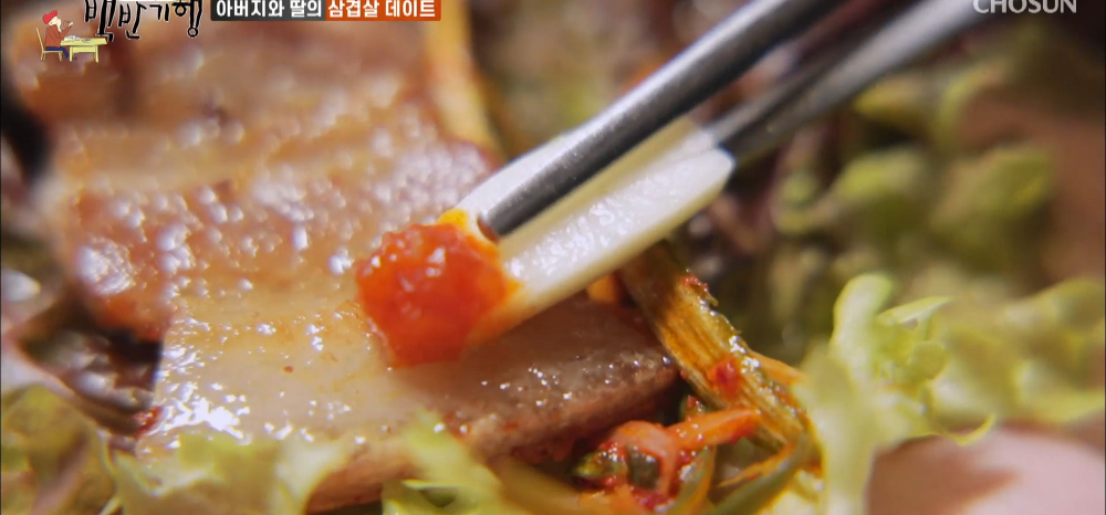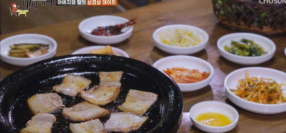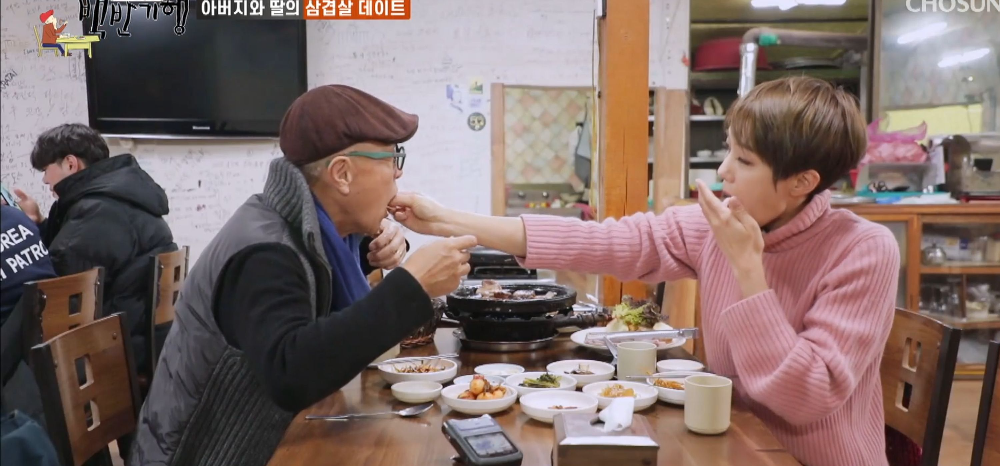 보리씨는 오랜만에 허영만 화백과 고기 식사에서 손수 잘 익은 삼겹살 고기를 골라 쌈을 싸서 입에 넣어 주었습니다. 정말 부녀 간에 아름다운 장면이었습니다. 식사를 하면서 그동안 하지 못한 이야기도 하면서 백반기행 평창맛집에서 좋은 장면이 만들어졌습니다.