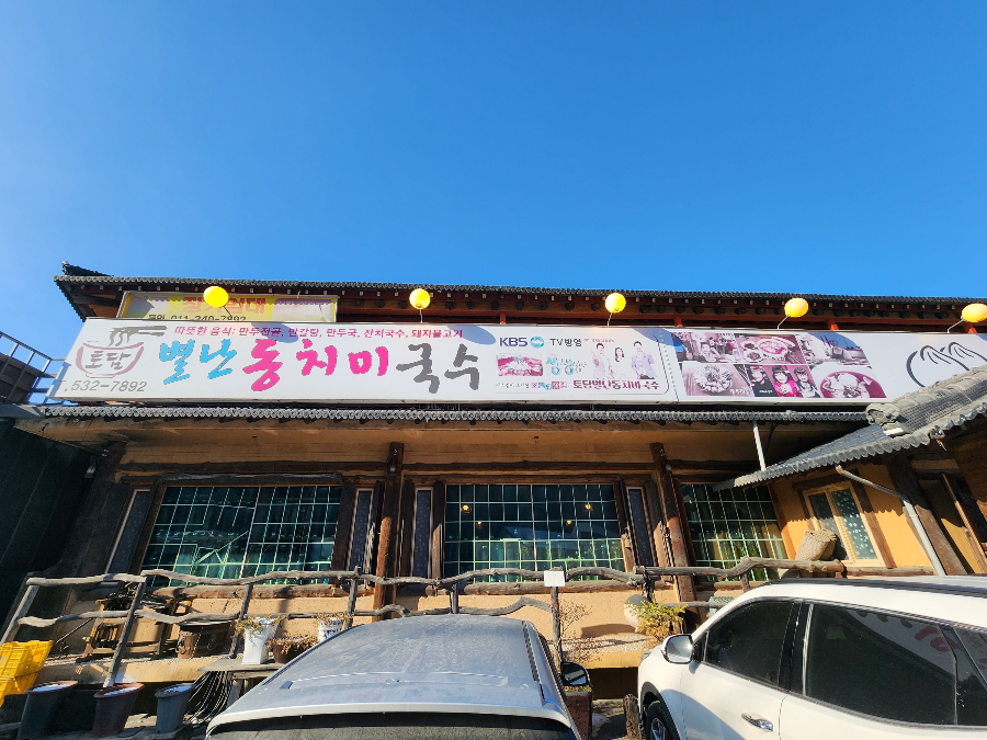 영하 10도를 우습게 내려가는 시점에 캠핑을 떠났습니다. 하룻밤을 지내고 2일째에 주변 관광을 나섰는데 점심을 가까운 곳에서 가볍게 할 만한 곳을 찾다가 방문한 토담 별난동치미 국수입니다. 겨울이지만 시원하고 개운하며 깔끔한 동치미 국수가 맛있었습니다.