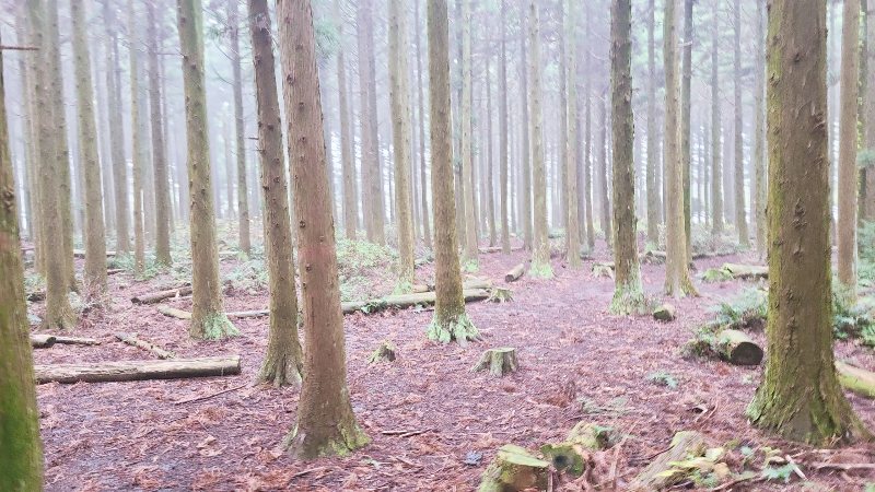 붉은 화산송이 길과 빼곡한 삼나무 숲길을 만끽 할 수 있습니다. 사려니숲길은 계절에 따라 날씨에 따라 다르게 보이는 것 같습니다. 제주도를 여행하면서 자연과 가까이 숲을 거닐 수 있는 코스들이 많이 있어서 정말 좋았습니다.