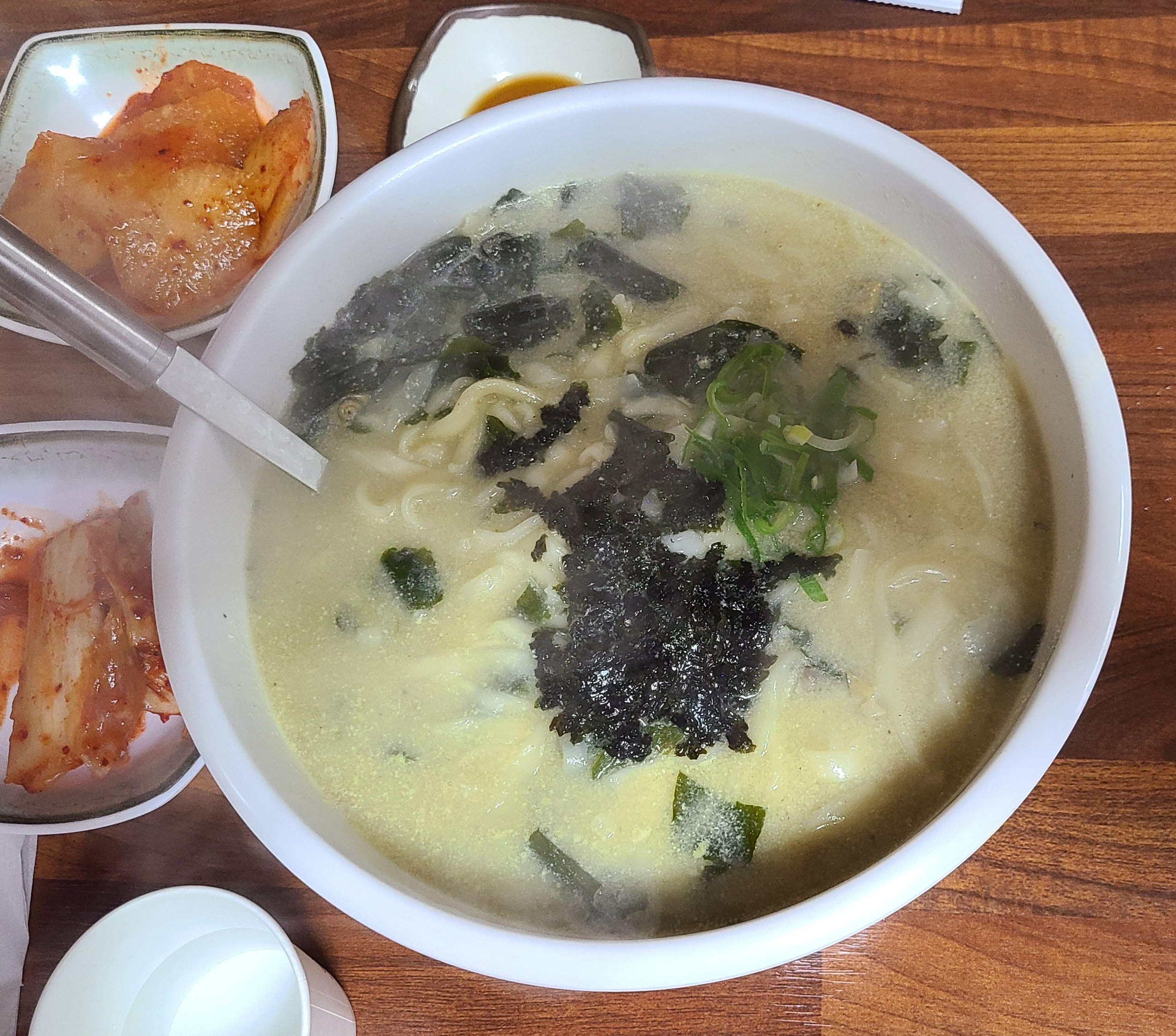 제주 조천읍 가볼만한곳 맛집칼국수에서 보말해물칼국수 2인분과 왕만두를 주문했습니다. 3명이 먹어서인지 양이 많지 않게 느껴졌습니다. 칼국수는 고소하니 맛있었습니다. 만두도 맛있었는데 지금 찾아보니 만두 사진이 없습니다. 사려니숲길을 걷고 난 후 점심을 먹느라 그때 배가 고팠었나 봅니다.