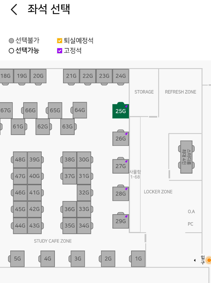 장기간 이용하시는 분들은 책이나 개인 물품을 들고 다니기가 불편합니다. 개인 사물함이 있어 앱에서 기간권을 구입하여 이용이 가능합니다. 좌석을 먼저 구입하여 사물한 기간권 구입이 가능하다는 점 참고하시가 바랍니다.