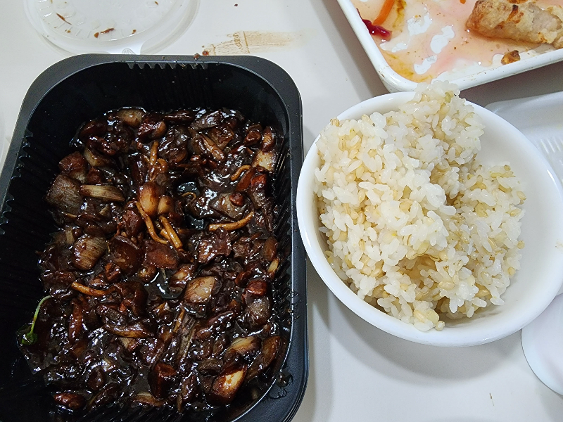 포장을 먹을 때는 삼선간짜장과 탕수육을 주문해서 잘 먹습니다. 간짜장 소스에 들어간 재료들이 적당한 크기에 신선한지 눈으로 보일 정도로 좋아 보입니다.