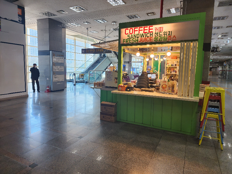 부천터미널소풍은 크지 않아 보입니다. 3개 층으로 나눠져 있어 그런 것 같습니다. 뉴코아 쇼핑몰과 함께 있어서 그런지 편의점, 커피매점 정도만 보입니다. 뉴코아 쇼핑몰 푸드스트릿 너무 잘되어 있어 그럴 것 같습니다. 제가 일요일 부천버스터미널 대합실을 방문하였는데도 정말 한산했습니다.