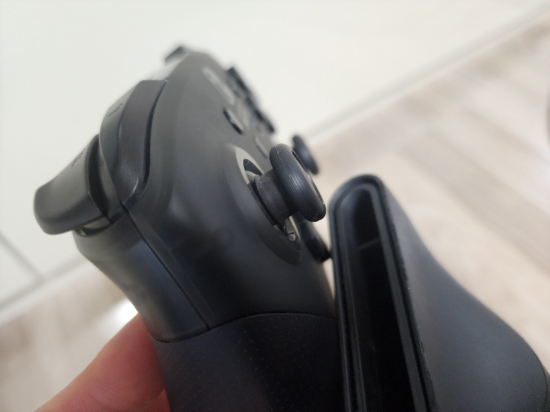 완료된 상태에서 닌텐도 스위치 프로콘을 움직여 보았더니 썸스틱이 본체게 부딪히는 느낌이 한결 딱딱하지 않고 부드럽게 느껴졌습니다. 이로 인해서 닌텐도 프로컨트롤러 갈림방지 잘될 것 같습니다. 4미리가 아닌 5 ~ 6미리로 하니 썸스틱 아랫 부분을 살짝 덮어 주는 것도 괜찮은 것 같습니다.