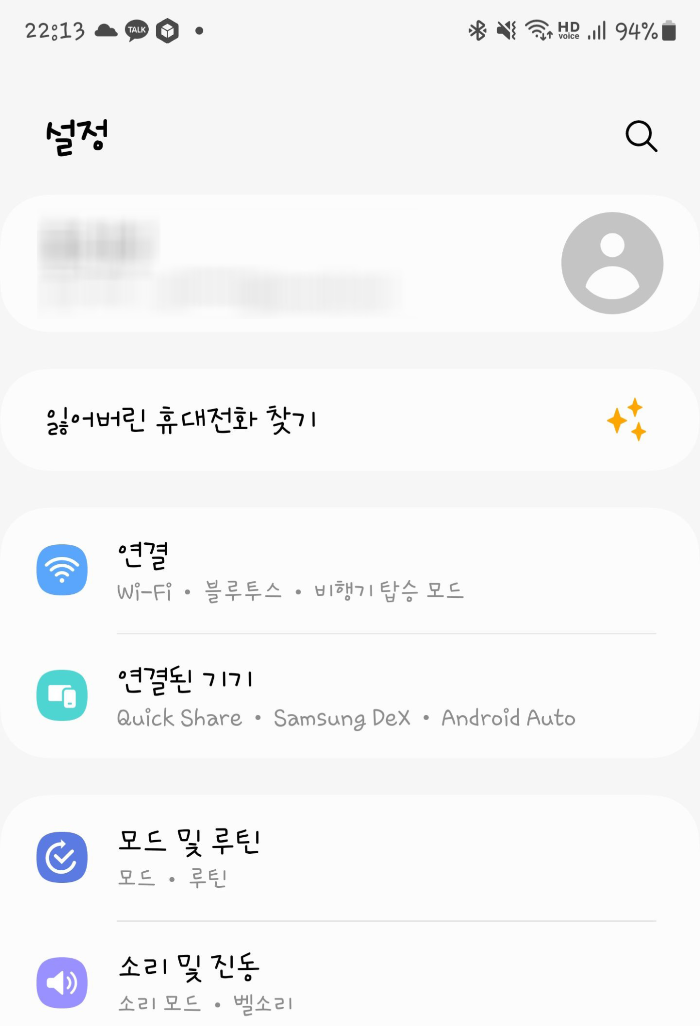 설정 메뉴가 굉장히 깁니다. 그래서 메뉴 맨아래 부분에서 끝까지 닿았을 때 중상단 부분을 보면 '디지털 웰빙 및 자녀 보호 기능'이라는 메뉴가 있습니다.