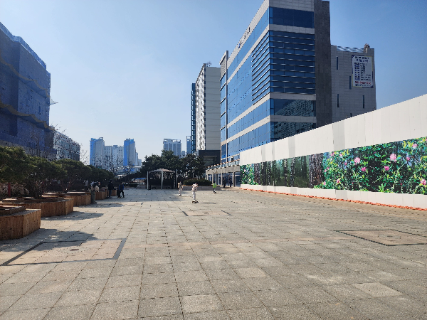 롱보드 강습을 받고 나와 광장에서 다시 연습을 했습니다. 강습 시 롱보드 대여료를 지불하면 강습 후에 1시간 정도 광장에서 연습하며 탈 수 있습니다.