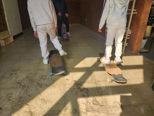 이유는 롱보드 강습을 받기 위해서 입니다. 일찍 도착하여 고릴라보드샵 근처에 롱보드를 탈 수 있는 넓은 곳에서 연습했습니다. 아이들은 몸이 유연해서 그런지 배우지도 않았는데 기본적으로 밀고 타고 균형도 굉장히 잘 잡습니다.