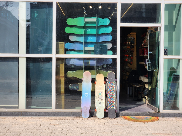 고릴라보드샵은 롱보드 강습뿐만 아니라 판매도 하고 있습니다. 약 3년전에 우리 큰아이가 롱보드 구매할 때는 20만원대 후반에 구입하였는데 이제는 약 32만원 정도 가격대가 형성되어 있다고 하셨습니다.