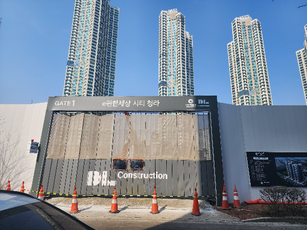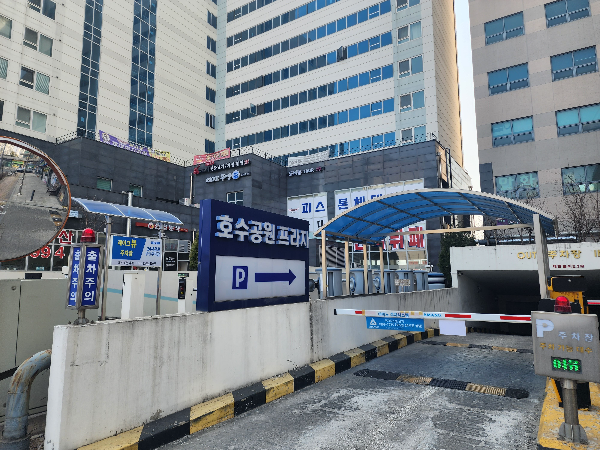 휴일에만 이곳을 찾았는데 '호수공원 프라자'라고 지하주차장 입구가 있습니다. 입구에서 이어진 도로가 대부분 커널웨이를 찾는 시민들의 주차장이 되는 것 같습니다. 좌측은 '이편한세상 시티 청라 오스피텔'이 건축되고 있어 휴일에도 아직까지는 한산한편입니다.